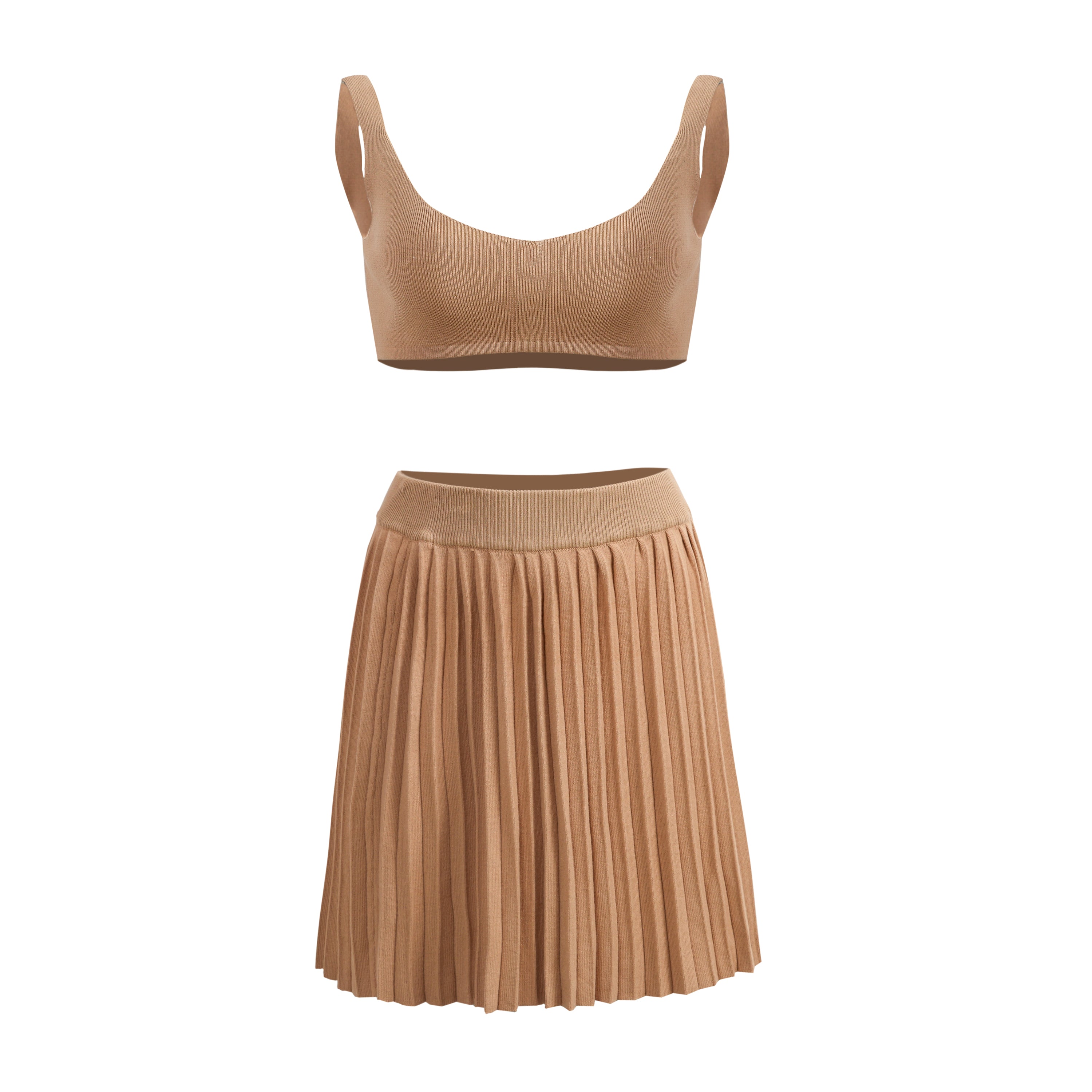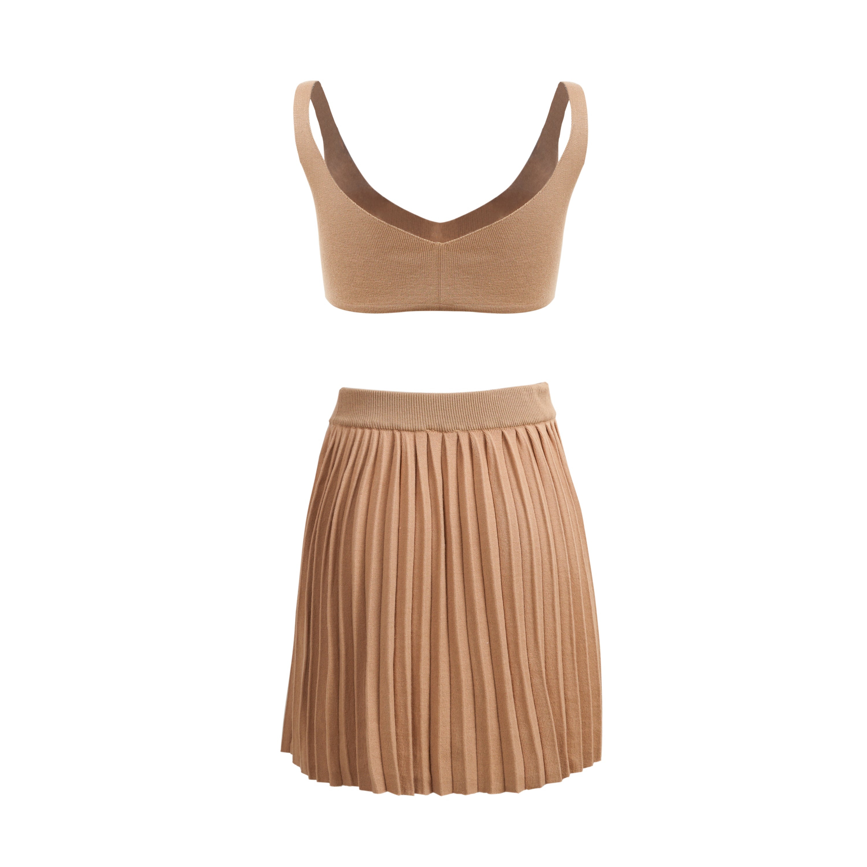 Khaki Sleeveless Bra Crop Tops With Pleated Short A-line Dress