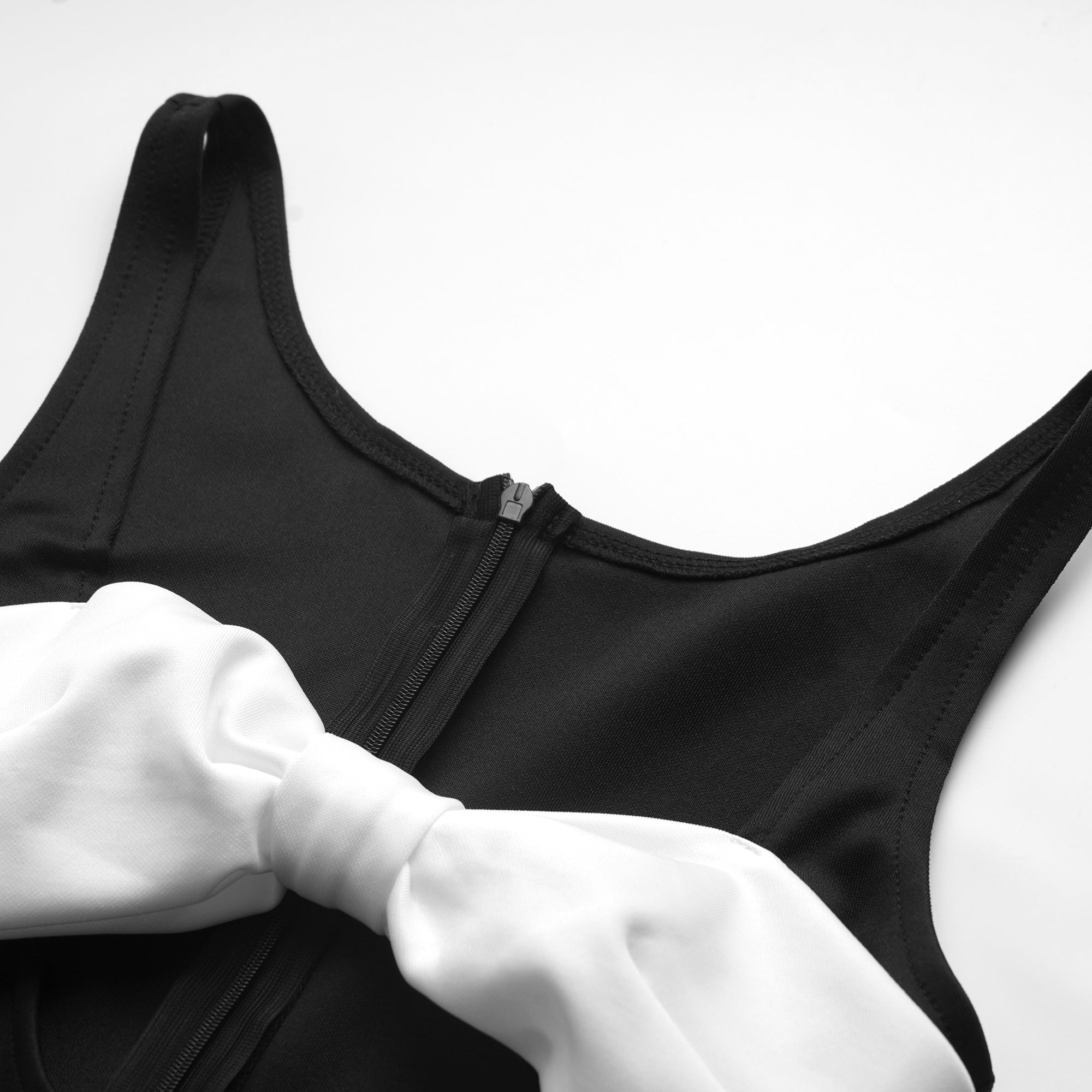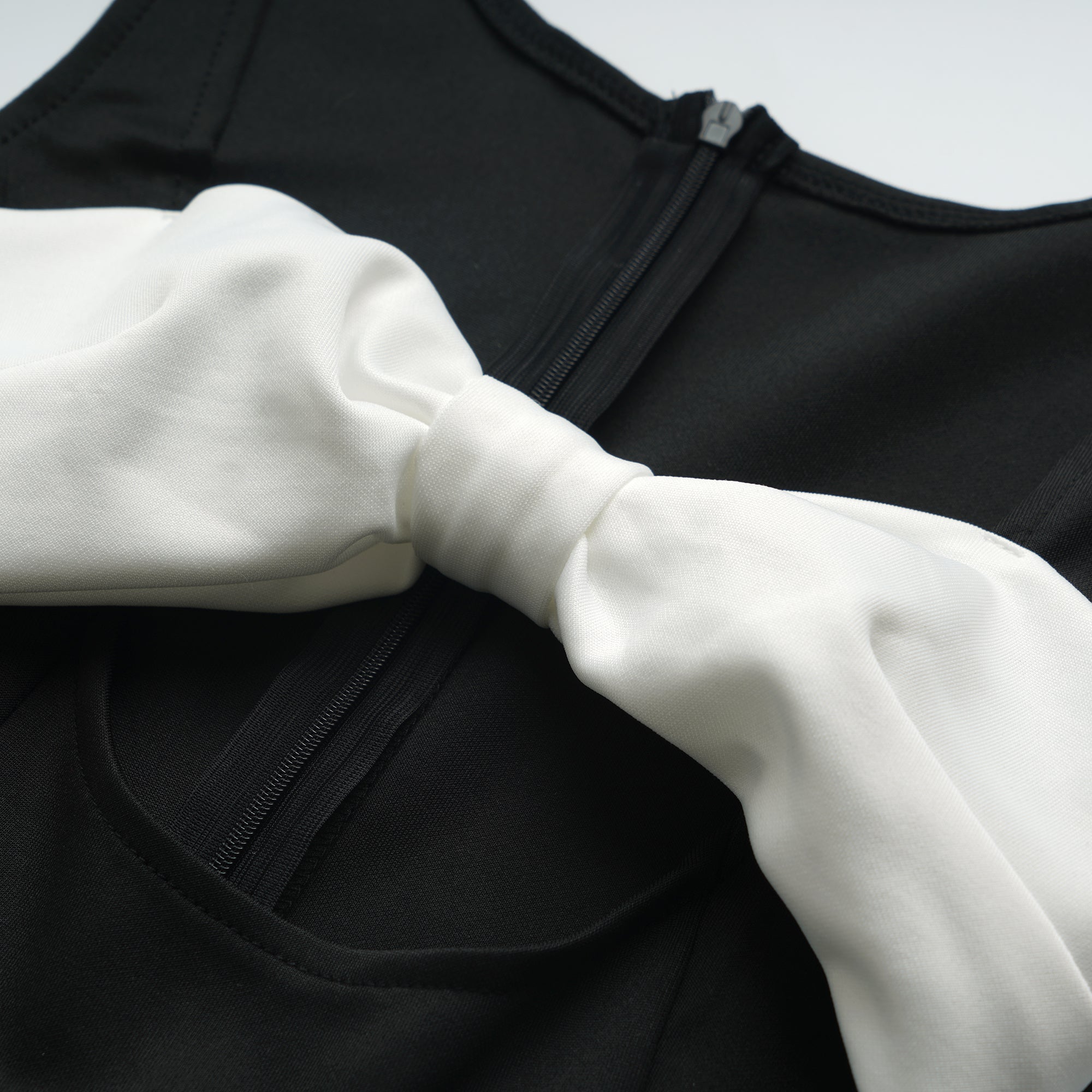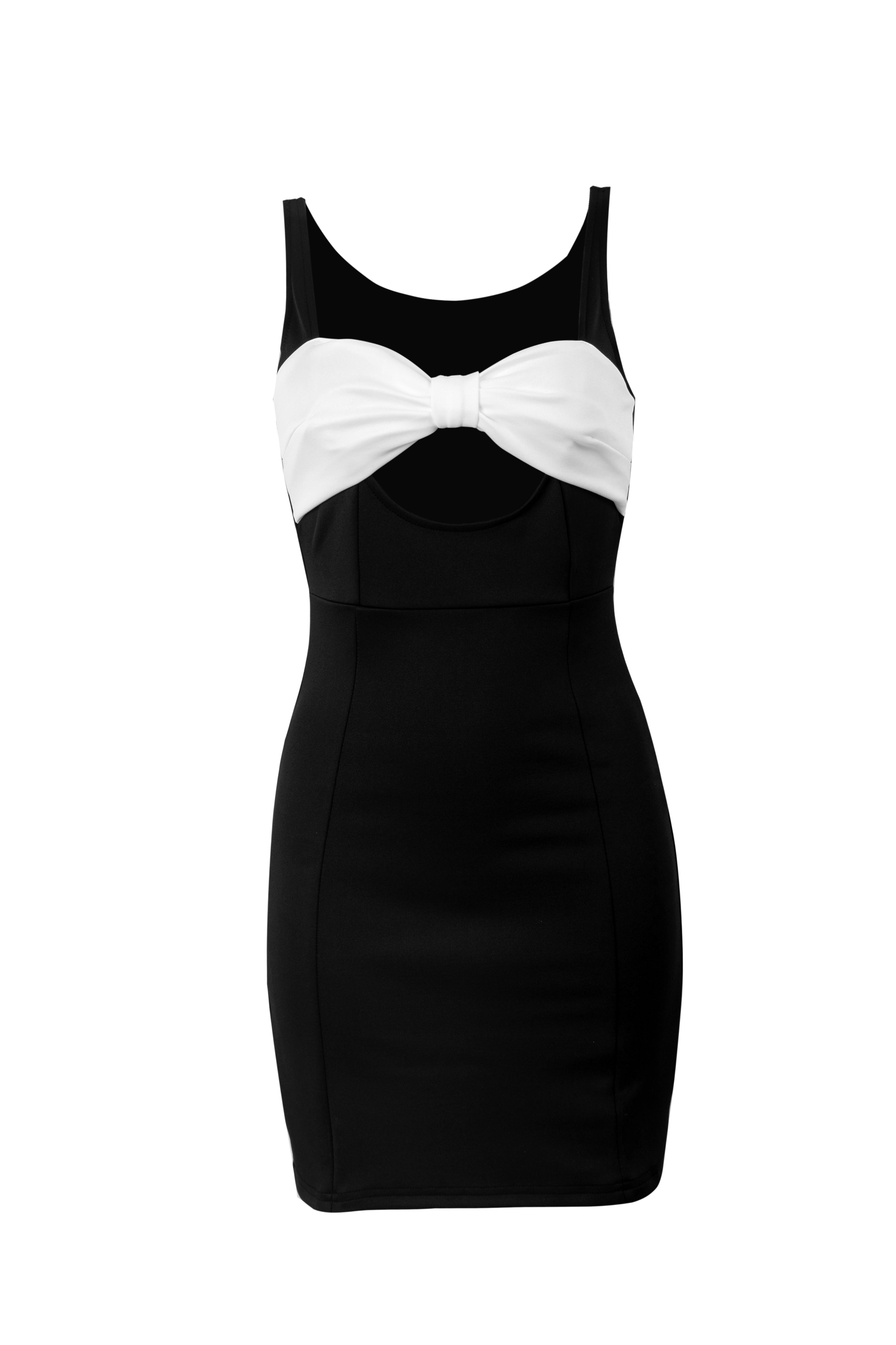 White Block Bow Front Black Sleeveless Bodycon Mini Cami Dress