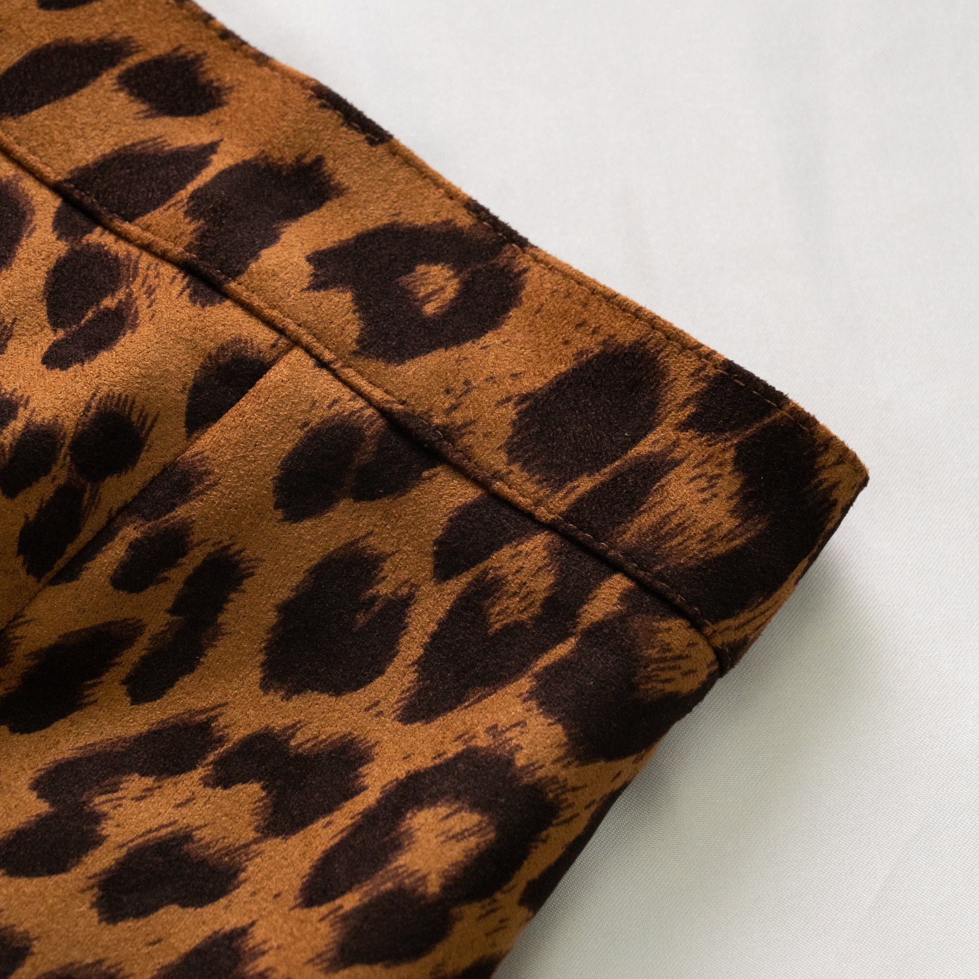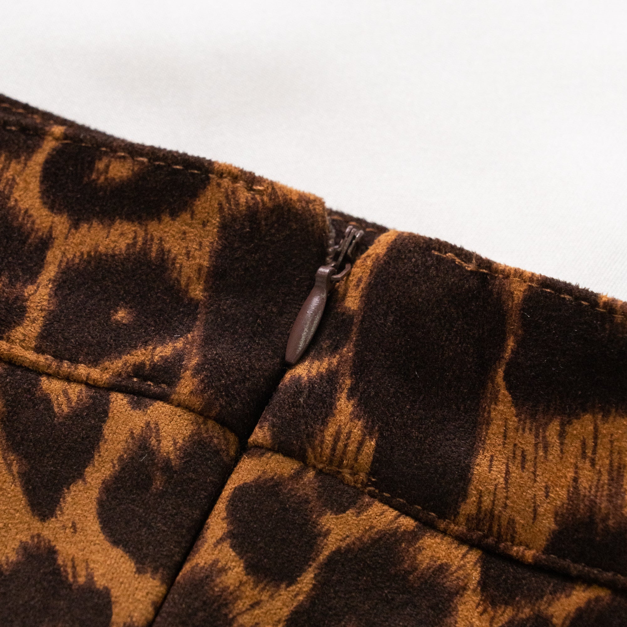 Women's Faux Suede Leopard Print High Waist Zipper Mini A-Line Short Skirt