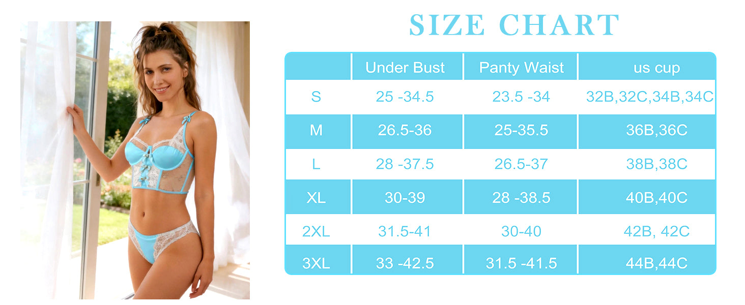 *We recommend taking measurements before ordering lingerie. Different lingerie brands use different size charts, if you want the lingerie set to fit perfectly, please check the size chart below
