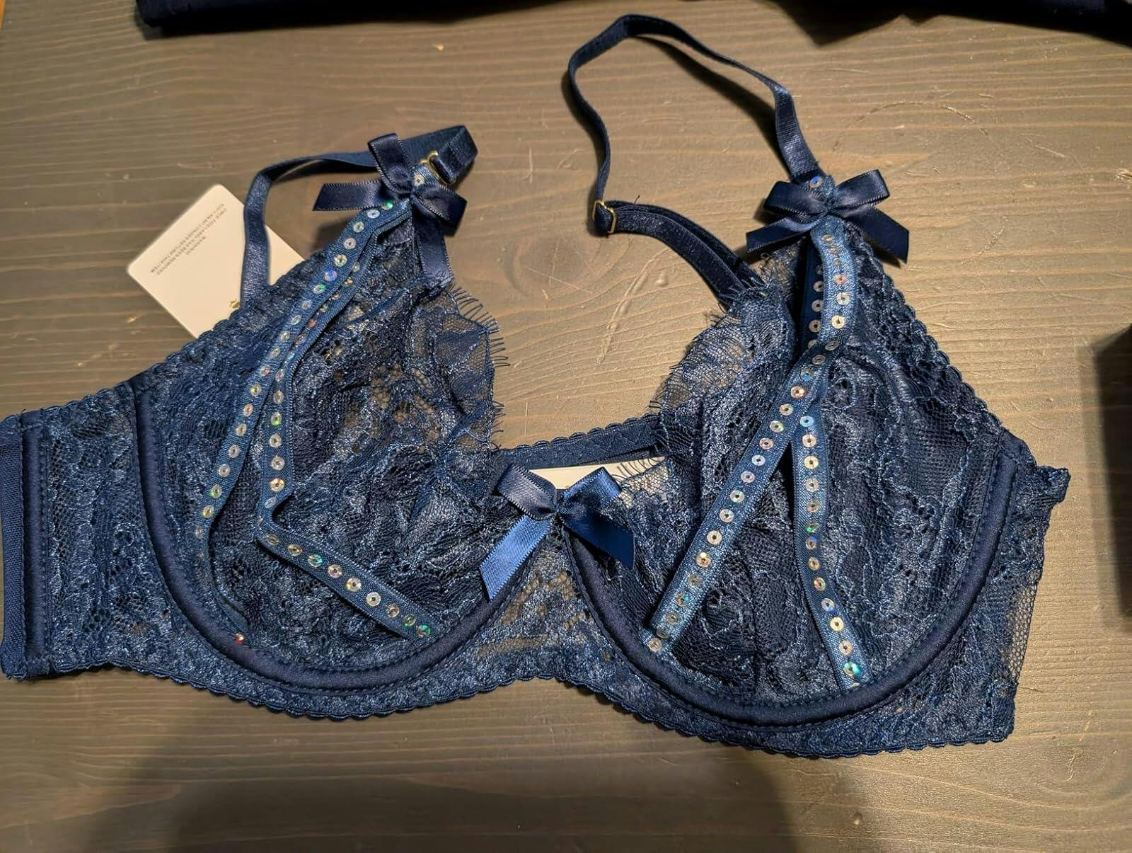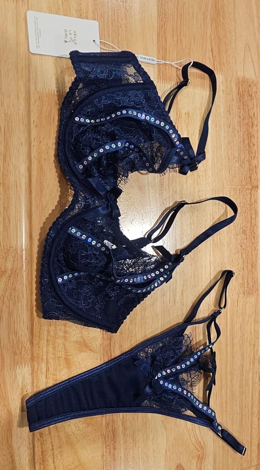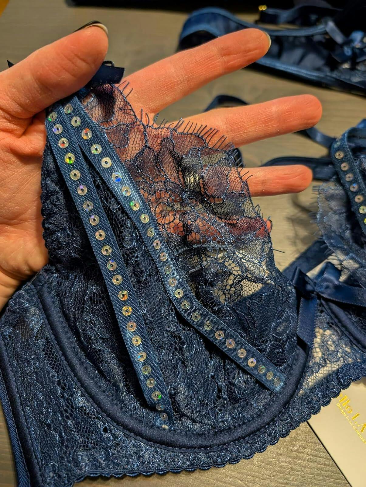 Midnight Sapphire Sparkle Lace Lingerie Set