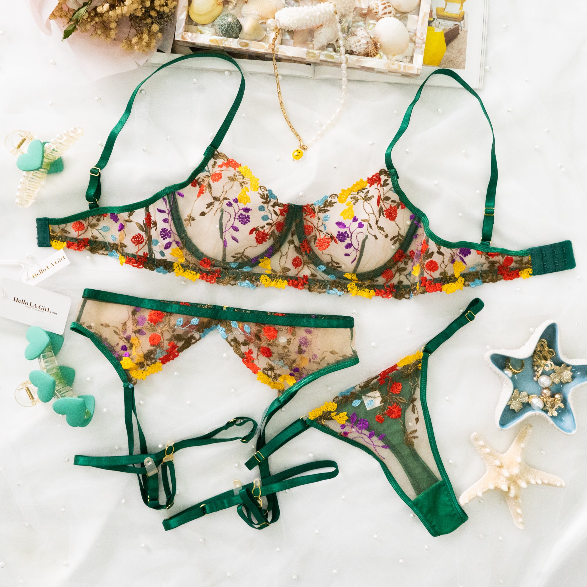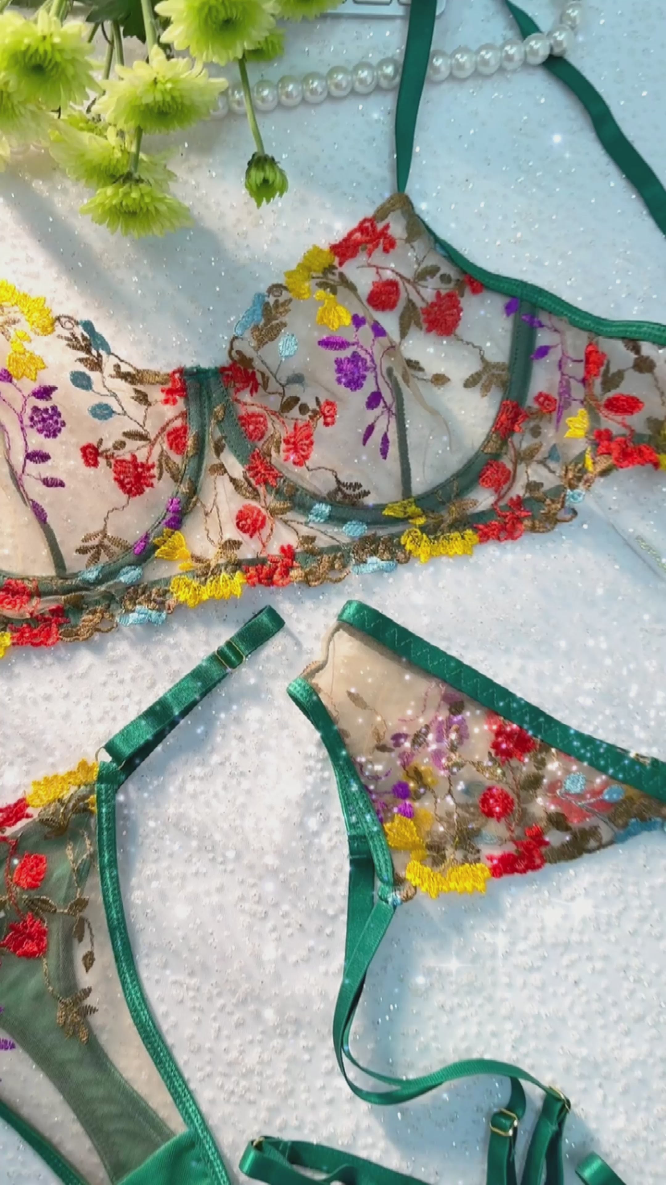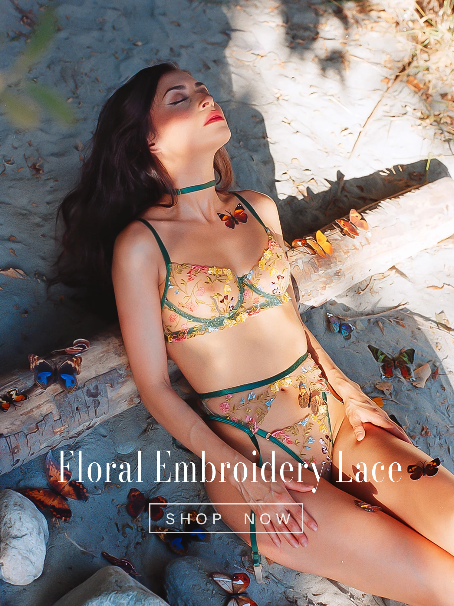 Enchanted Garden Sheer Floral Embroidery Lingerie Set