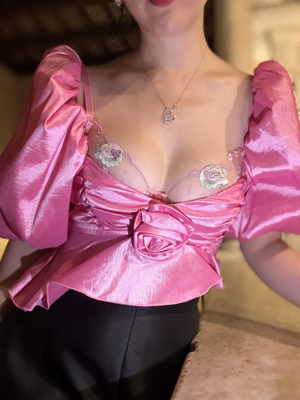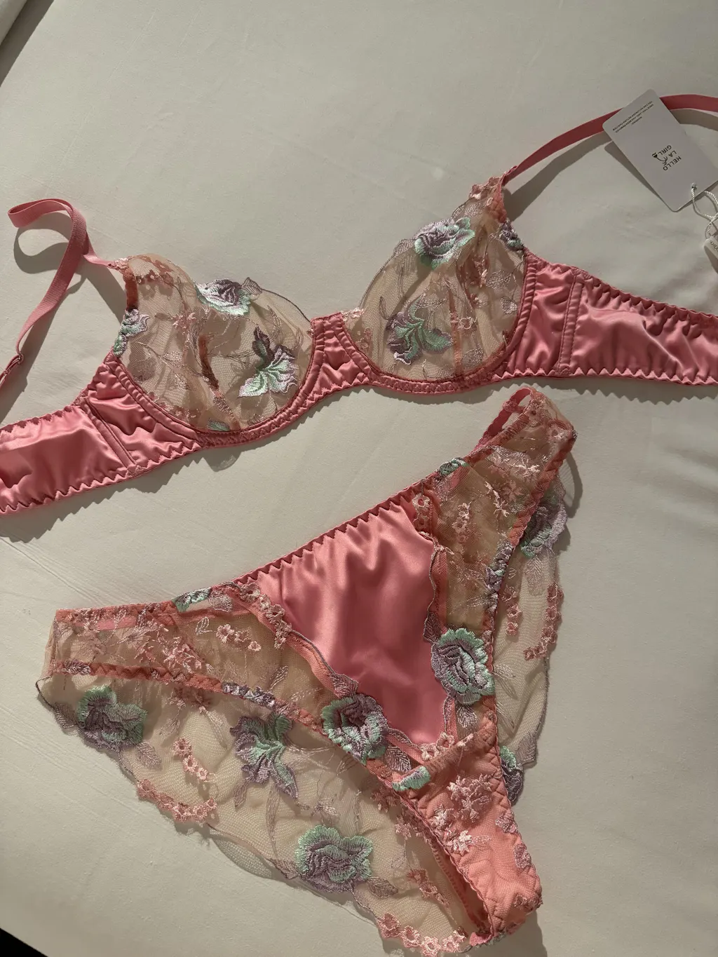 Pink Petals Embroidered Lingerie Set