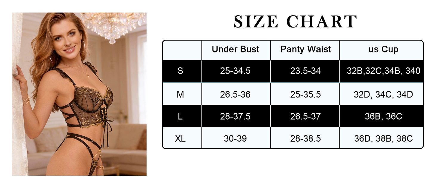*We recommend taking measurements before ordering lingerie. Different lingerie brands use different size charts, if you want the lingerie set to fit perfectly, please check the size chart below