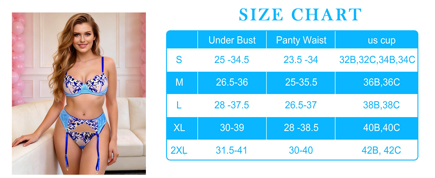 *We recommend taking measurements before ordering lingerie. Different lingerie brands use different size charts, if you want the lingerie set to fit perfectly, please check the size chart below