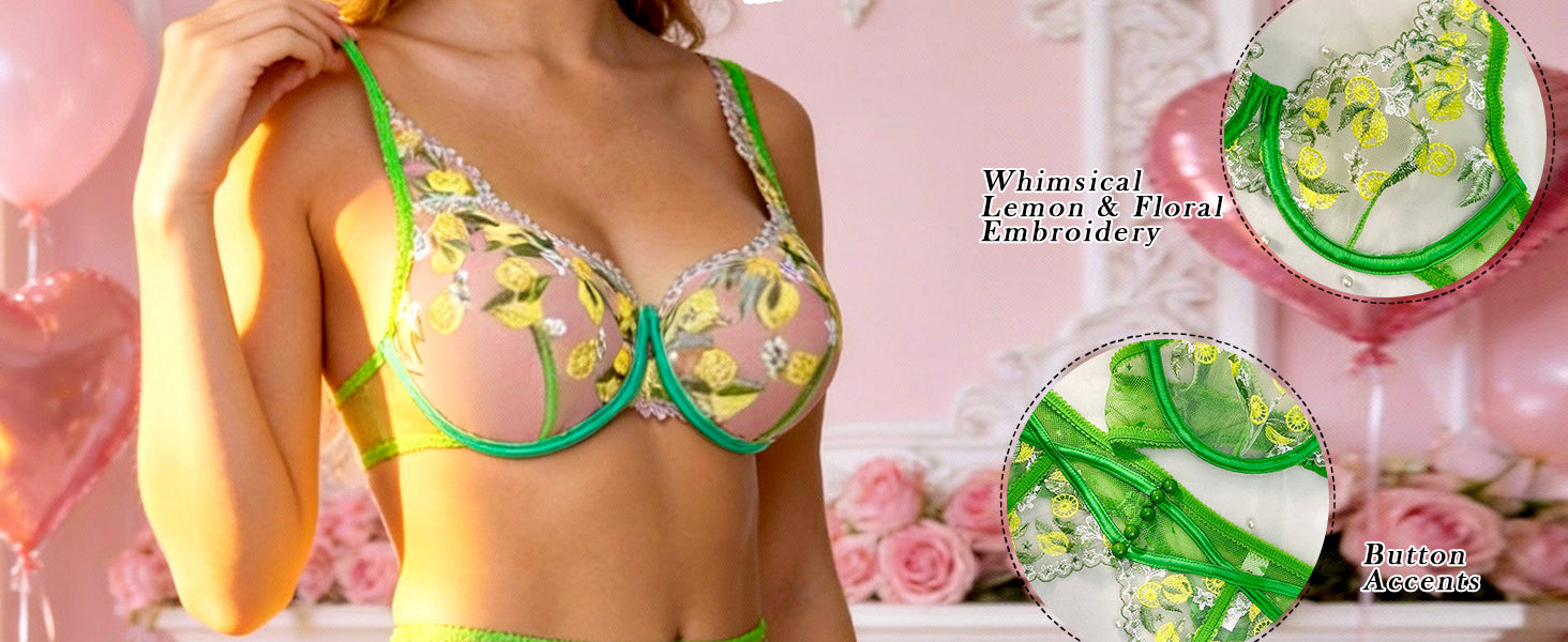 Fresh Lemon Embroidery Lingerie Set