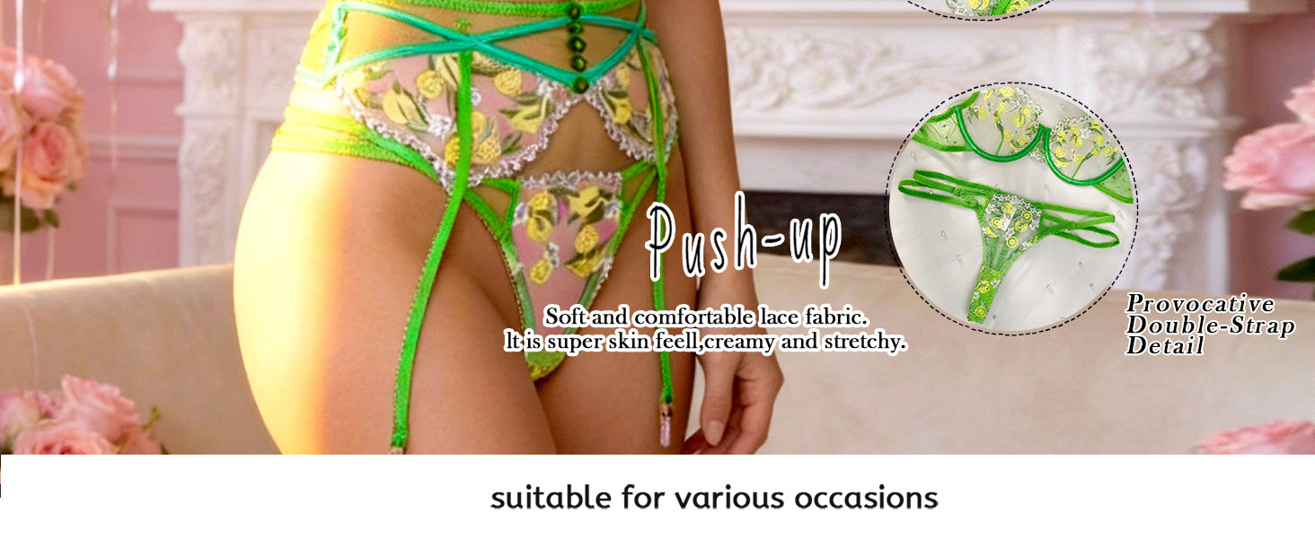 • Exquisite Embroidery Design: The lingerie set features intricate embroidery, adding delicate patterns for an alluring appeal.