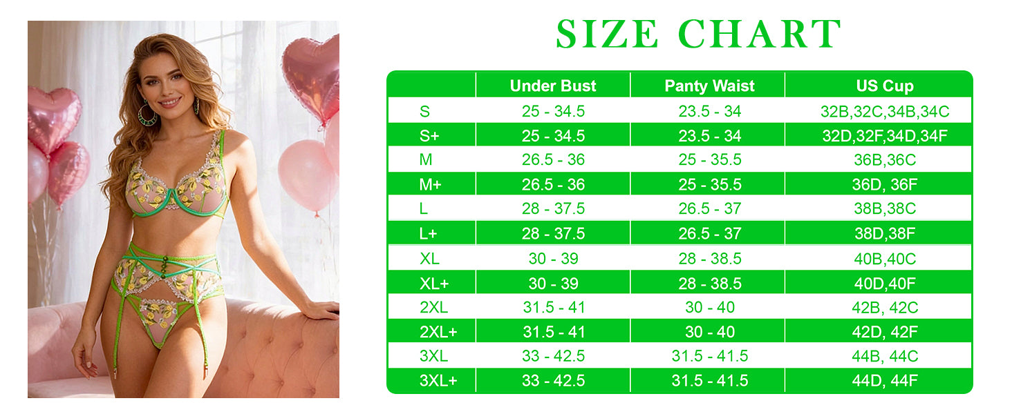 *We recommend taking measurements before ordering lingerie. Different lingerie brands use different size charts, if you want the lingerie set to fit perfectly, please check the size chart below