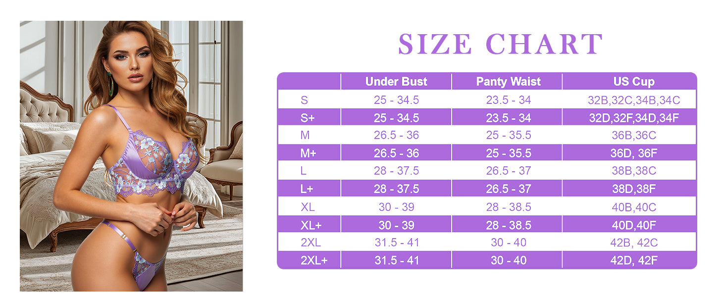 • Comfortable and Form-Fitting: Lightweight Padded-free Underwire Bra. Crafted from soft and smooth fabric, this lingerie set offers a comfortable and flattering fit.