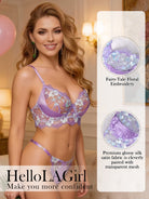 Lavender Floral Embroidered Satin Push-up Lingerie Set