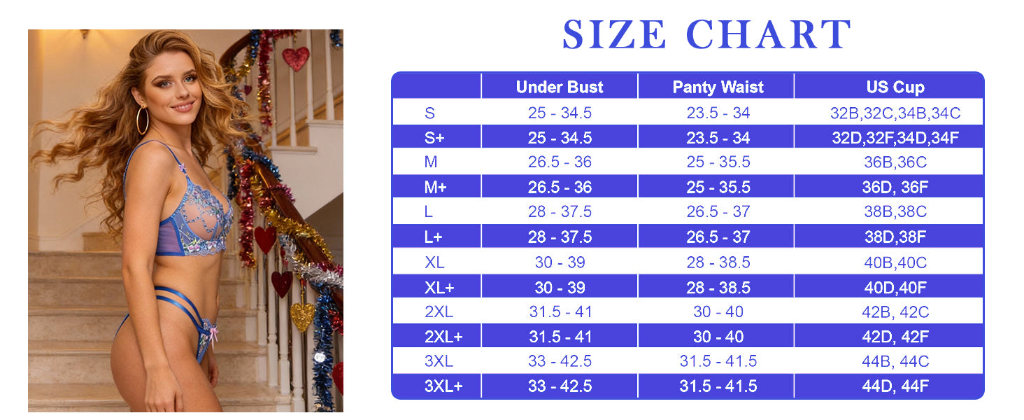 *We recommend taking measurements before ordering lingerie. Different lingerie brands use different size charts, if you want the lingerie set to fit perfectly, please check the size chart below