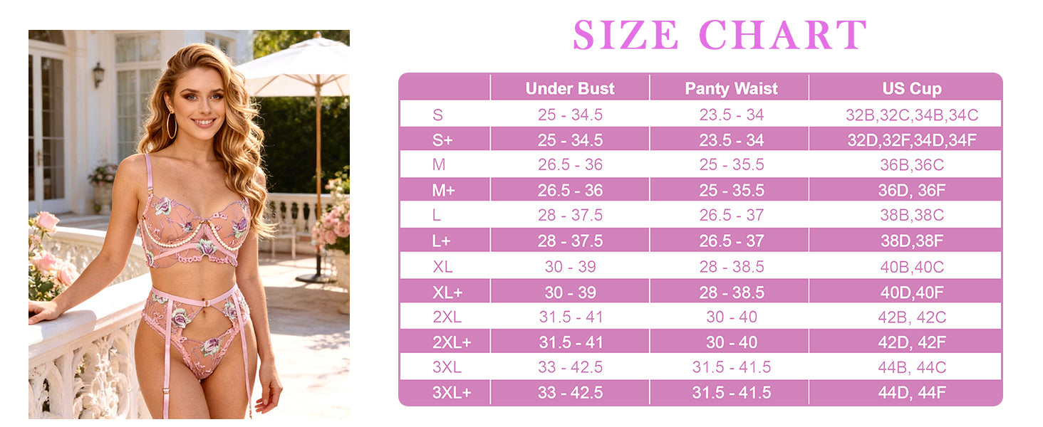 *We recommend taking measurements before ordering lingerie. Different lingerie brands use different size charts, if you want the lingerie set to fit perfectly, please check the size chart below