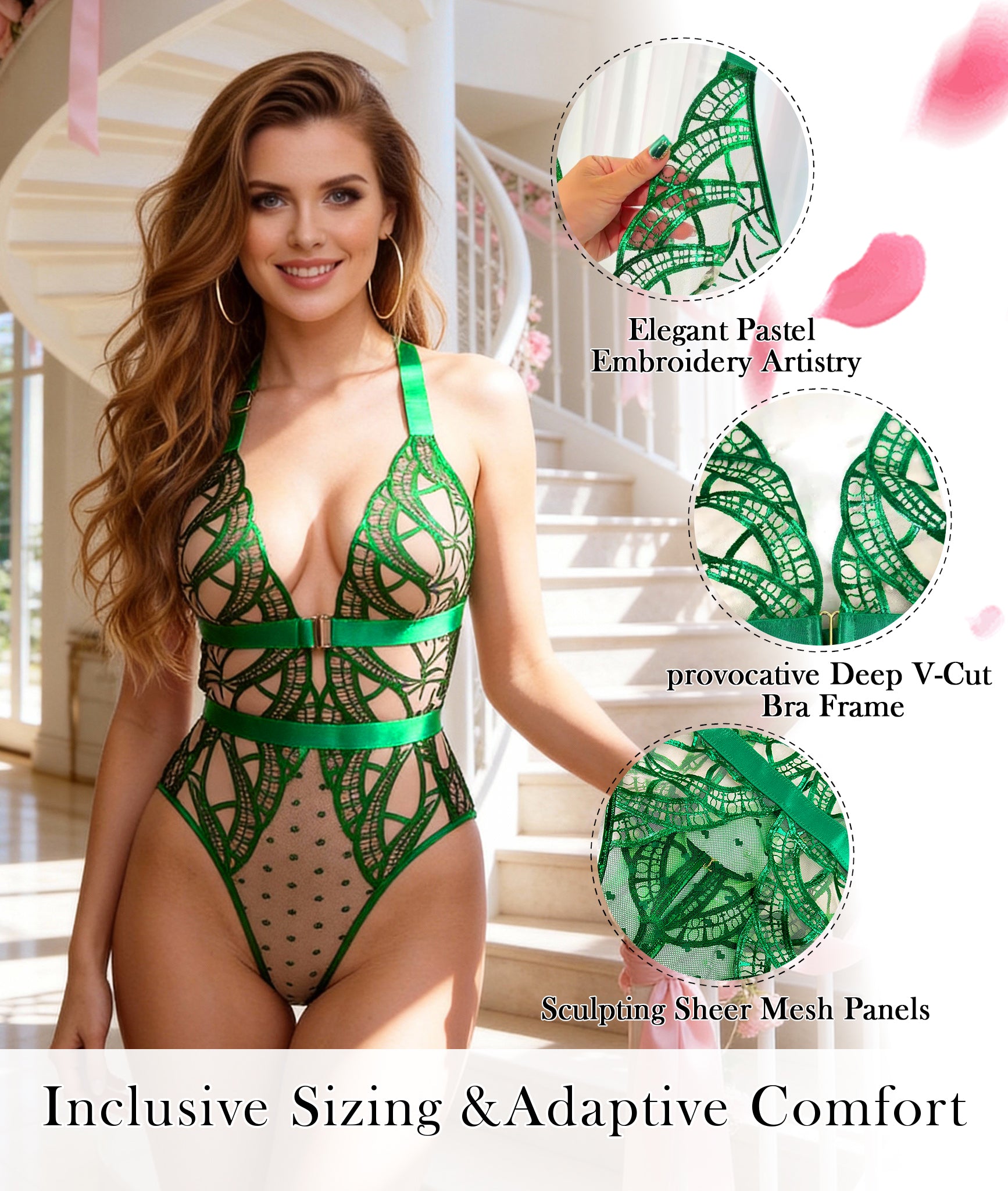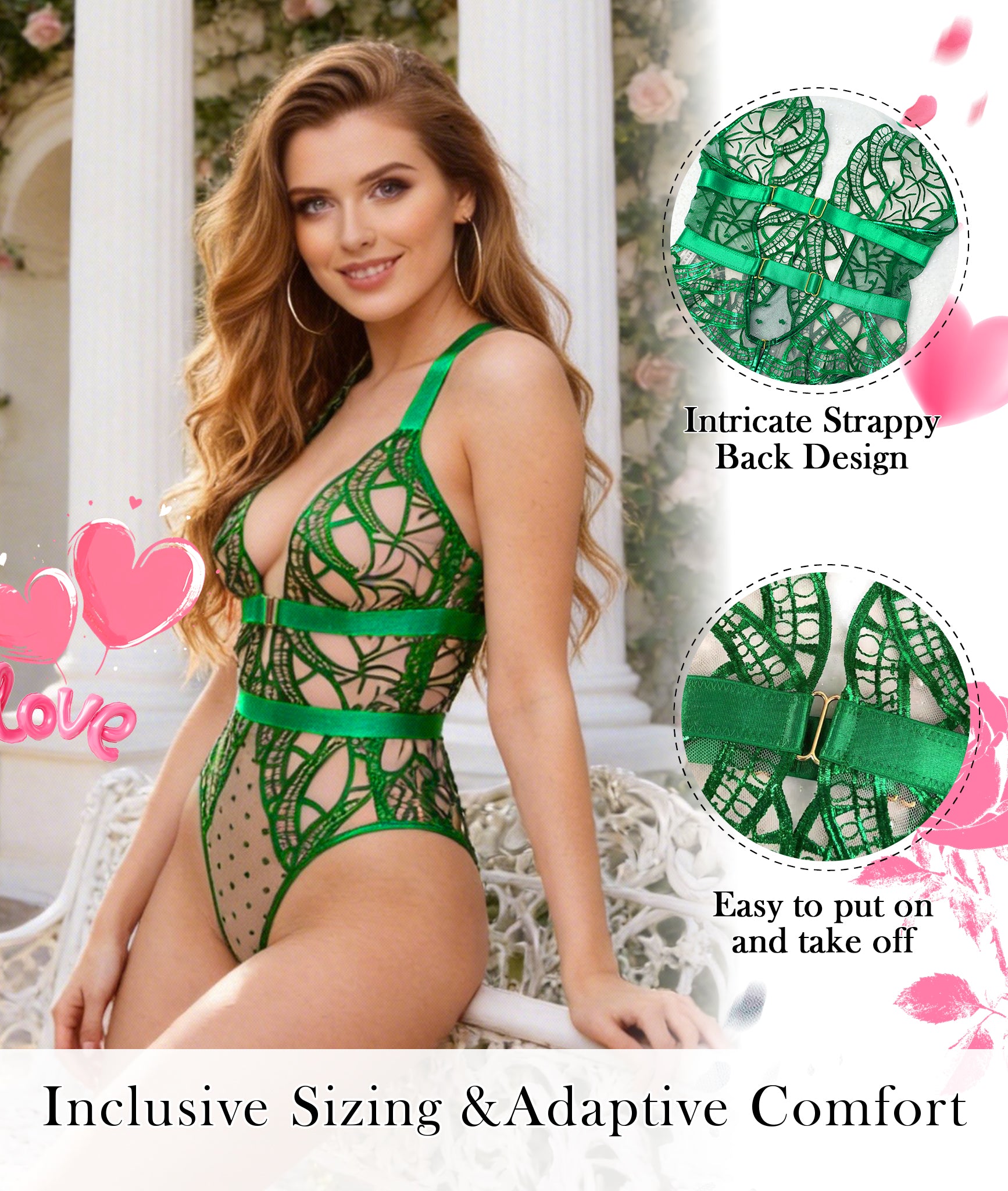 This Green Foil Lace Seductive Sheer Bodysuit combines luxurious green foil lace with a seductive sheer design. The delicate lace highlights your curves, while the sheer fabric adds an alluring touch. Perfect for creating unforgettable moments, this bodysuit exudes elegance and sensuality, making it an essential piece for a bold, confident look. Whether for a special occasion or an intimate evening, its flattering fit and exquisite details will make you feel irresistibly beautiful.💚💫