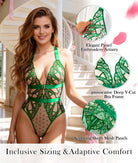 Green Foil Lace Seductive Sheer Bodysuit