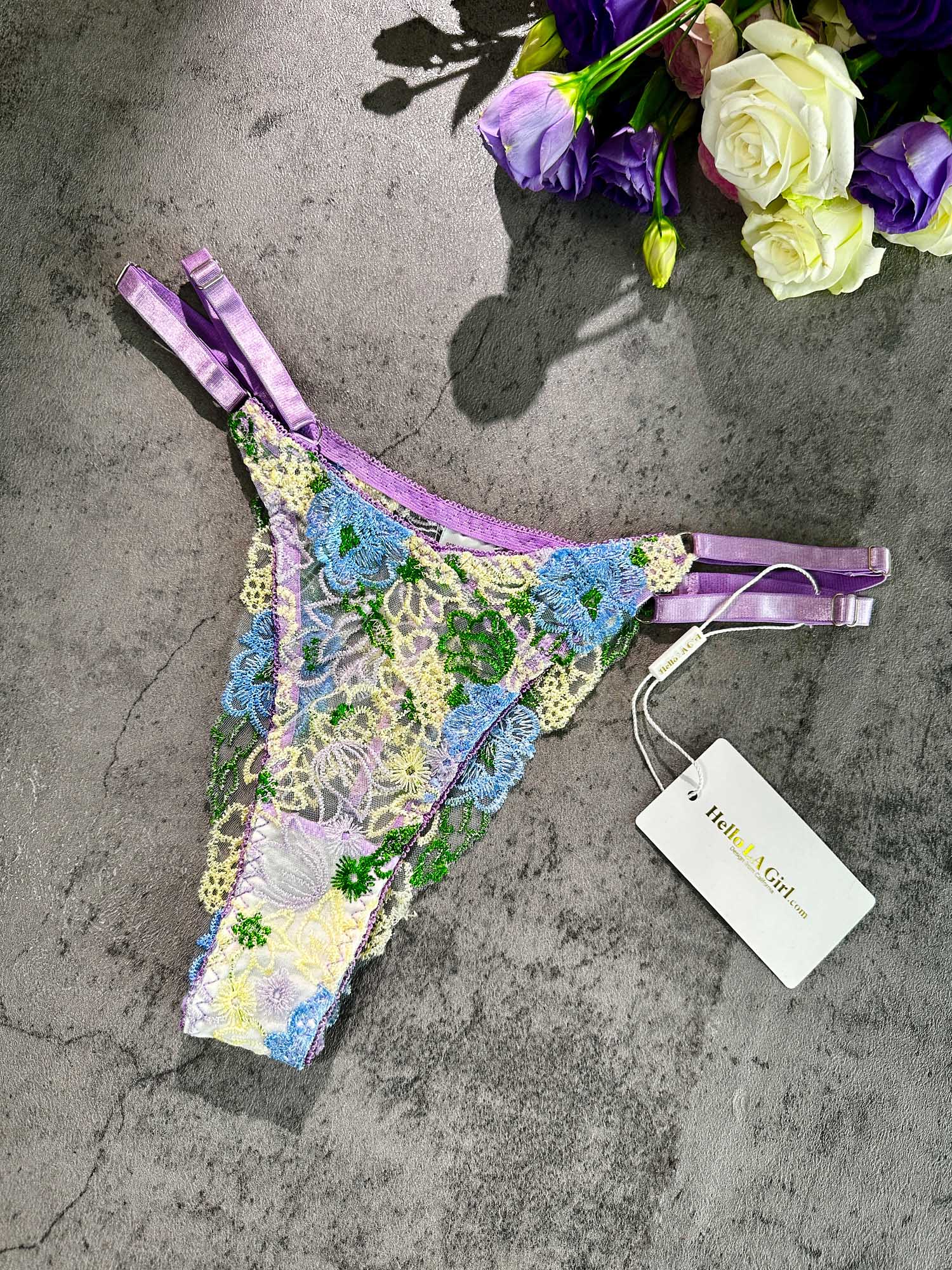 Purple Florals Embroidery Thong
