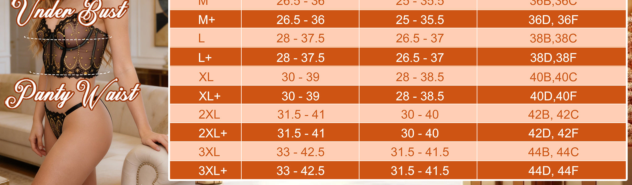 *We recommend taking measurements before ordering lingerie. Different lingerie brands use different size charts, if you want the lingerie set to fit perfectly, please check the size chart below