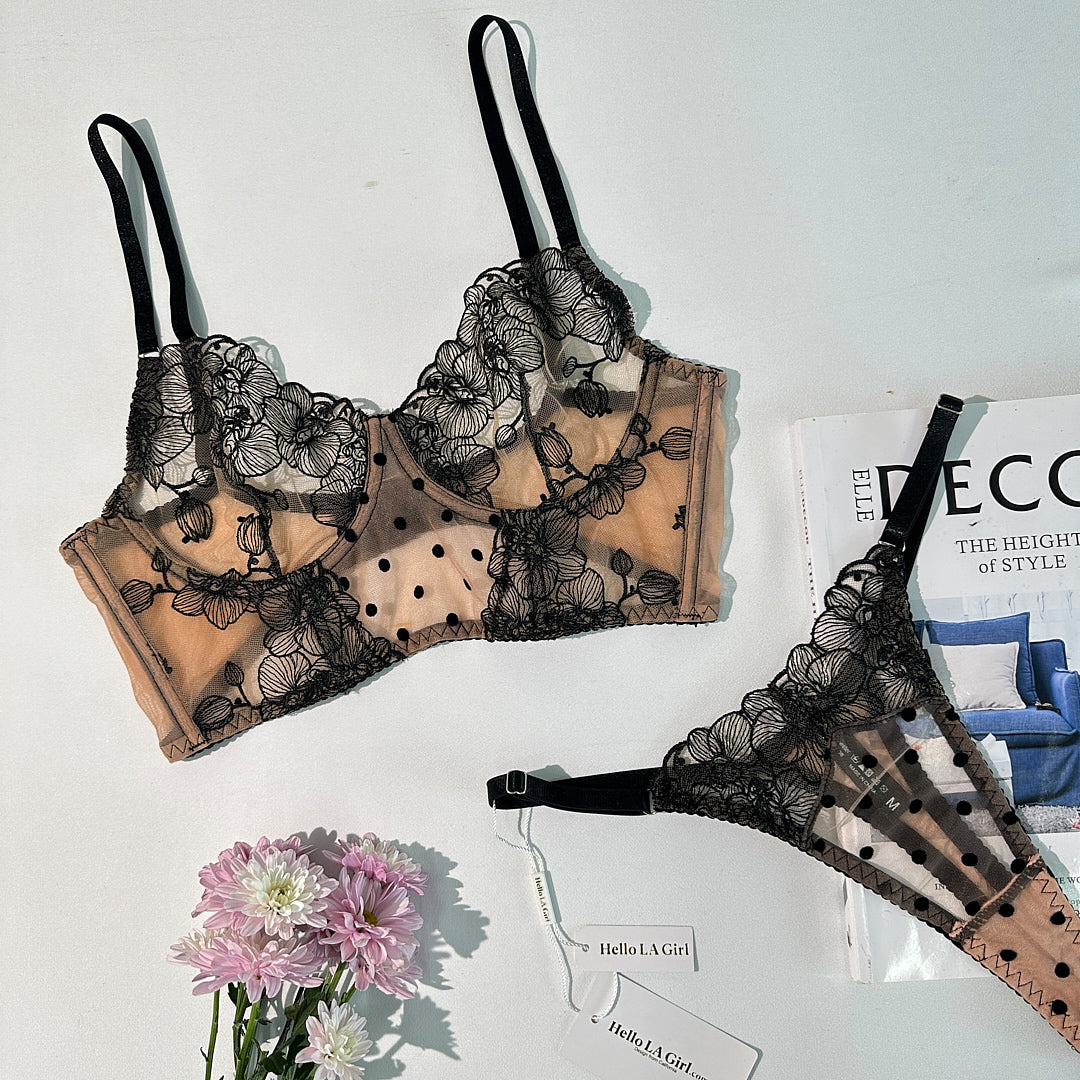 Sheer Floral Lace & Polka Dot Lingerie Set