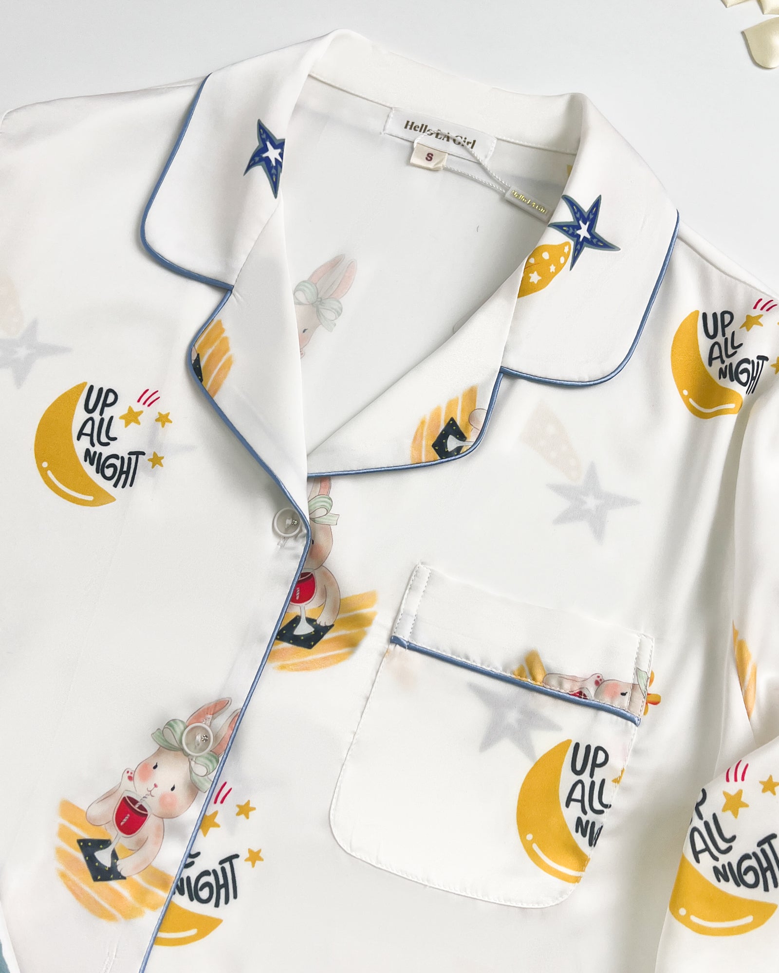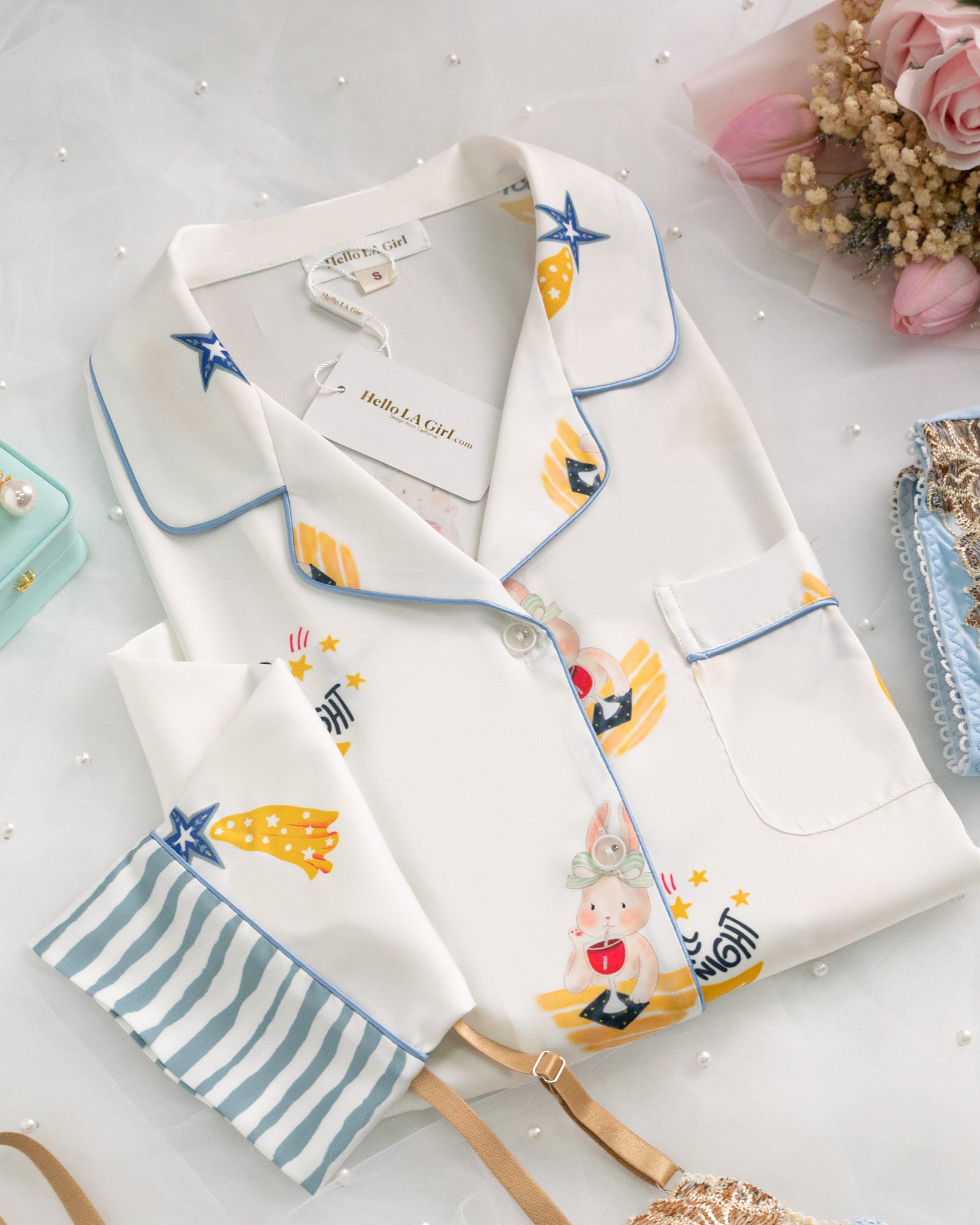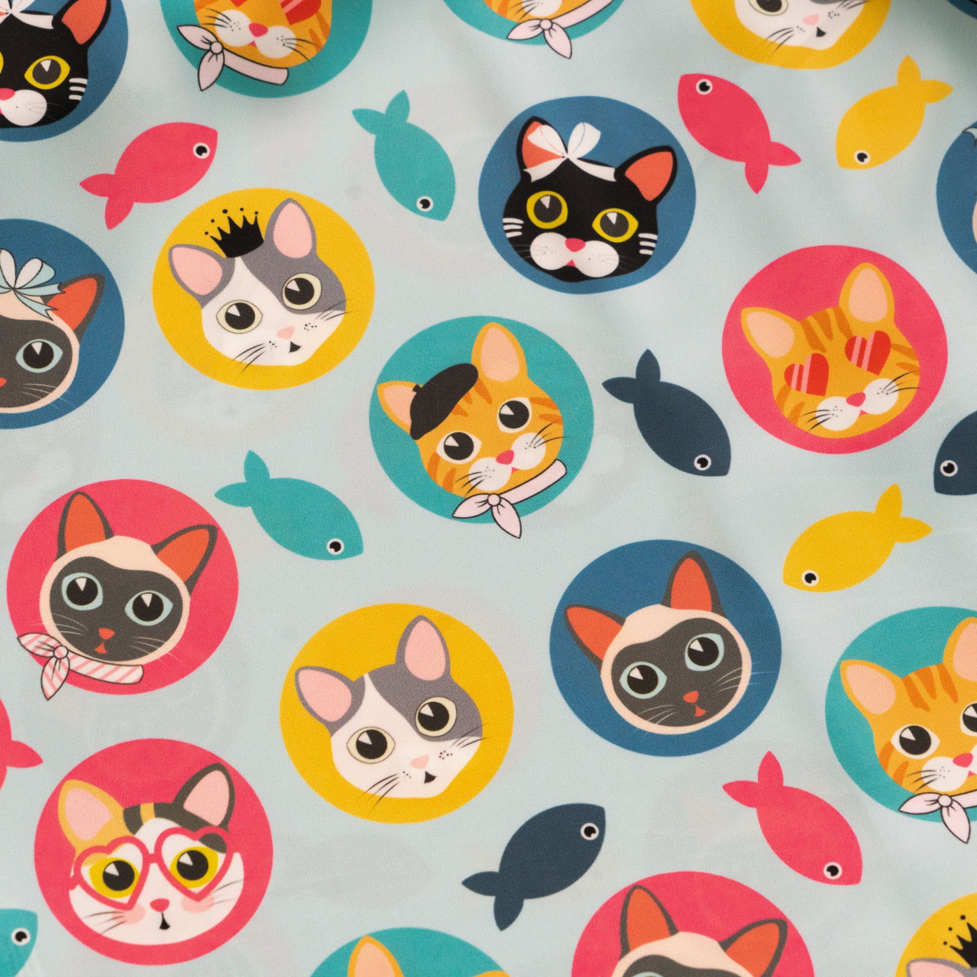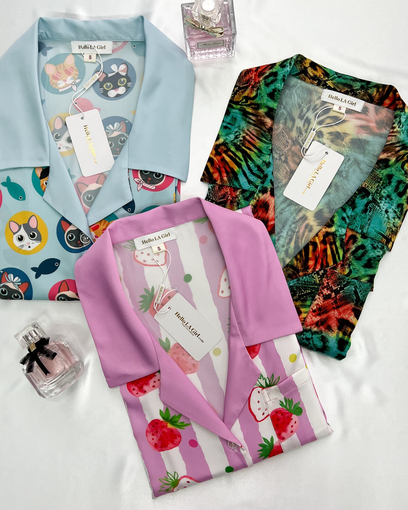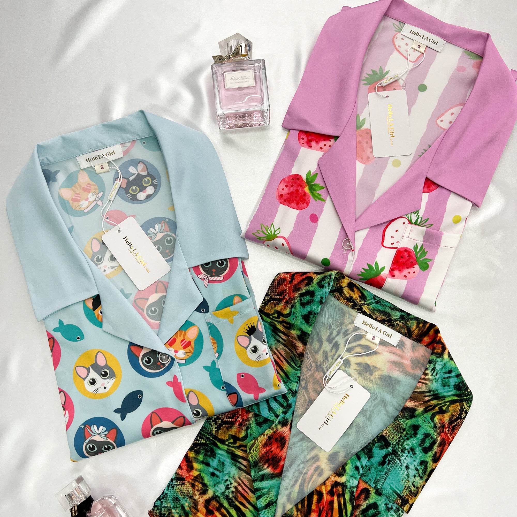 Cats Print Blue Sleep Shirt Silky Satin Pajamas Sleepshirt is made of 100% Polyester.