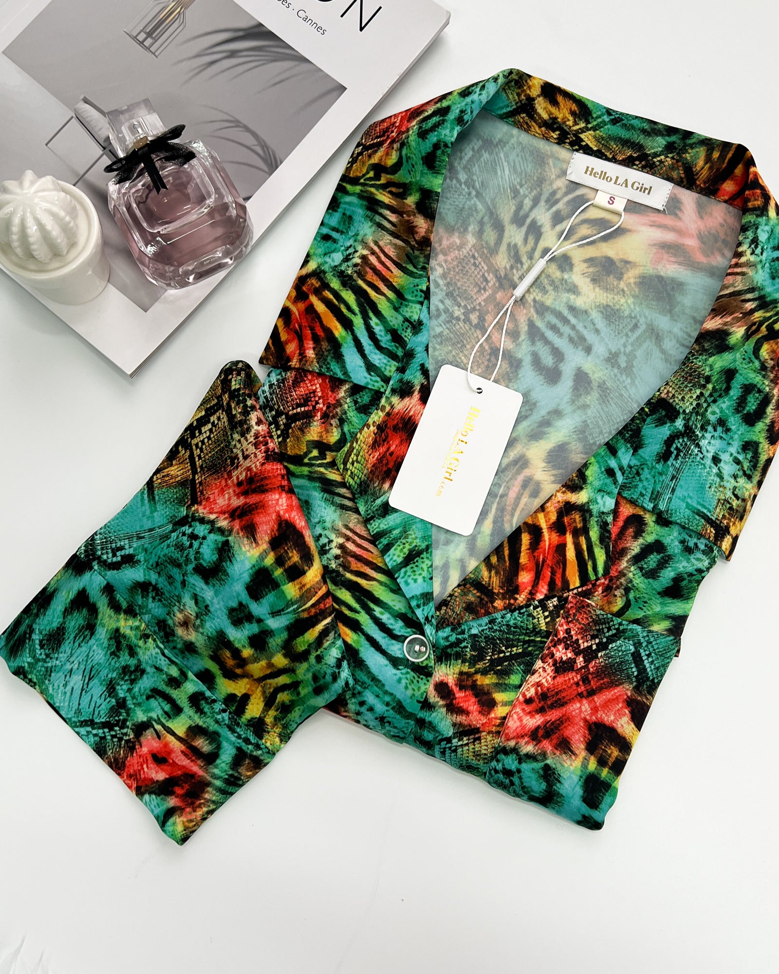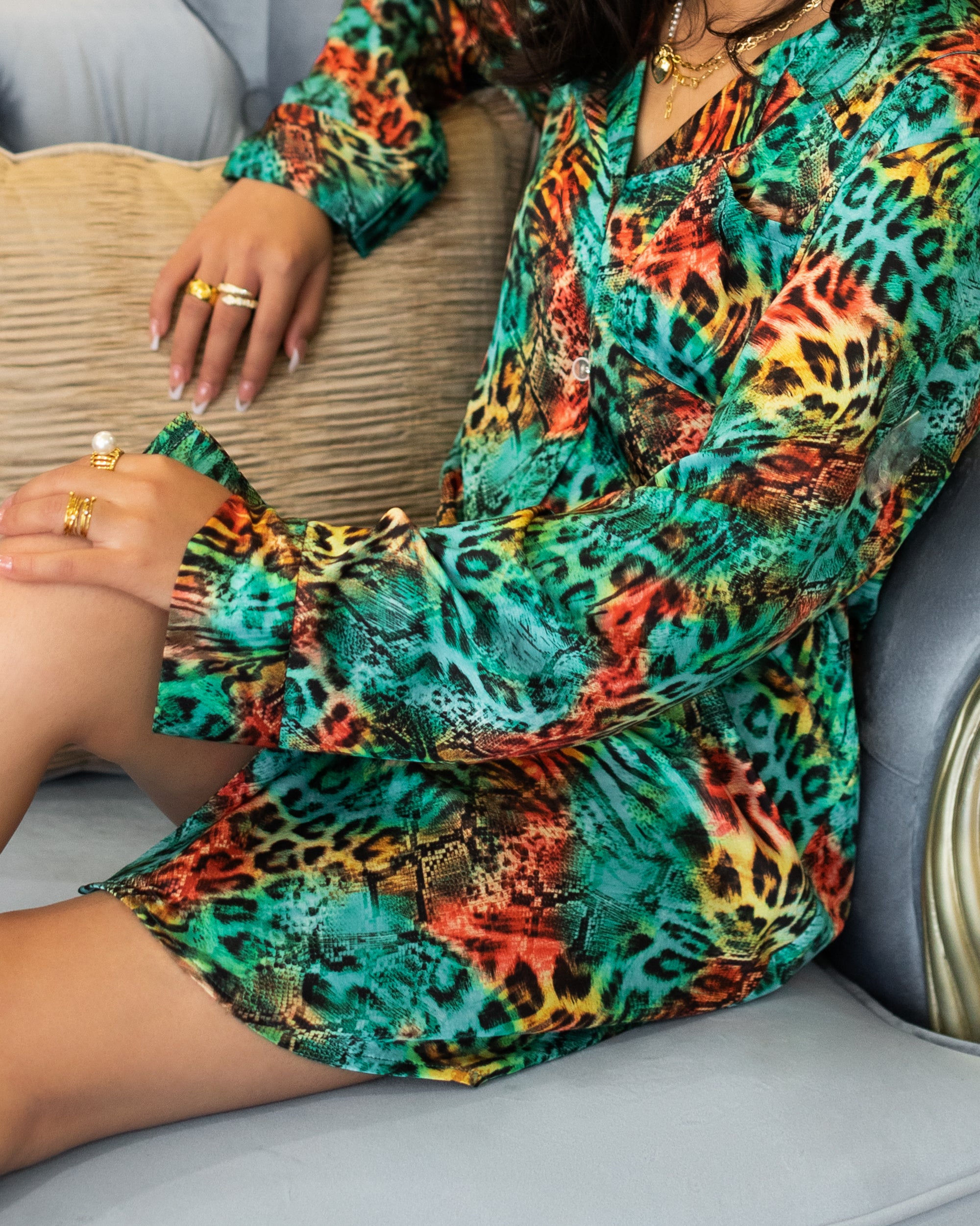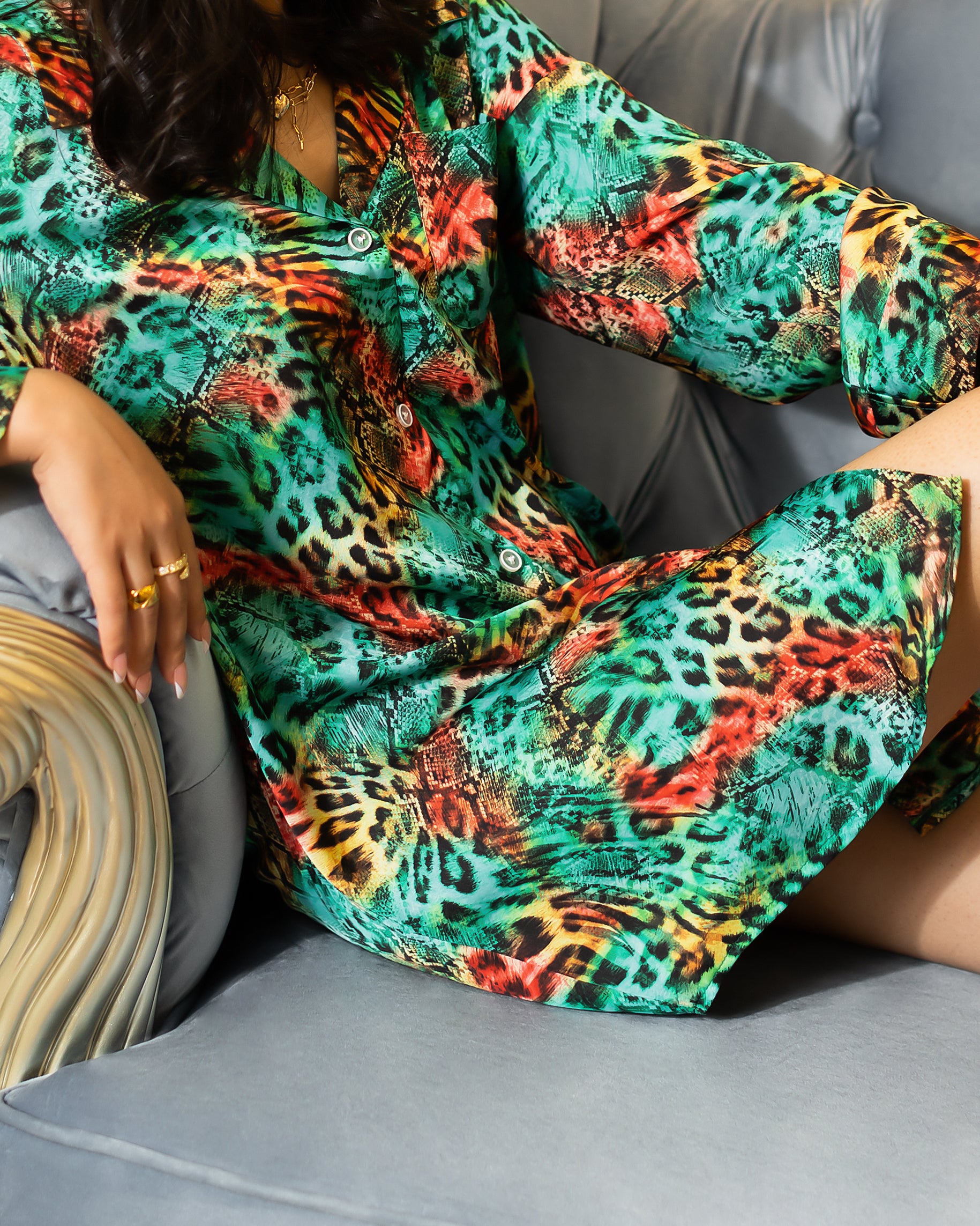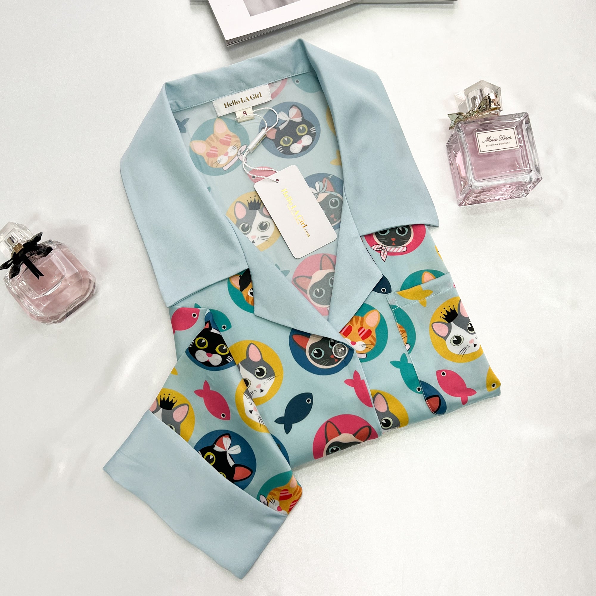 Cats Print Blue Sleep Shirt Silky Satin Pajamas Sleepshirt