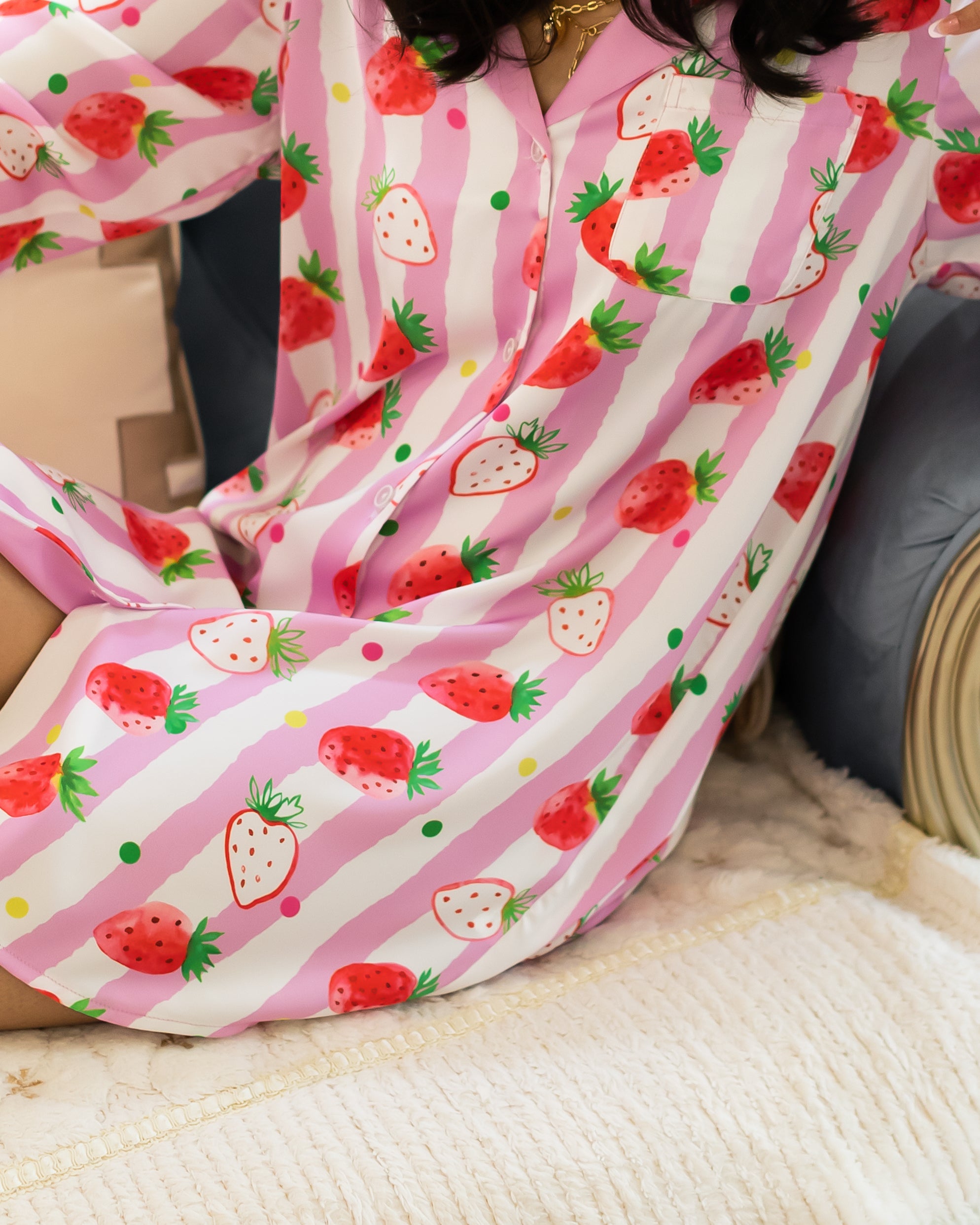 This lightweight sleep shirt is made of lightweight silky satin, soft, breathable and skin-friendly, help you have a sound sleep.