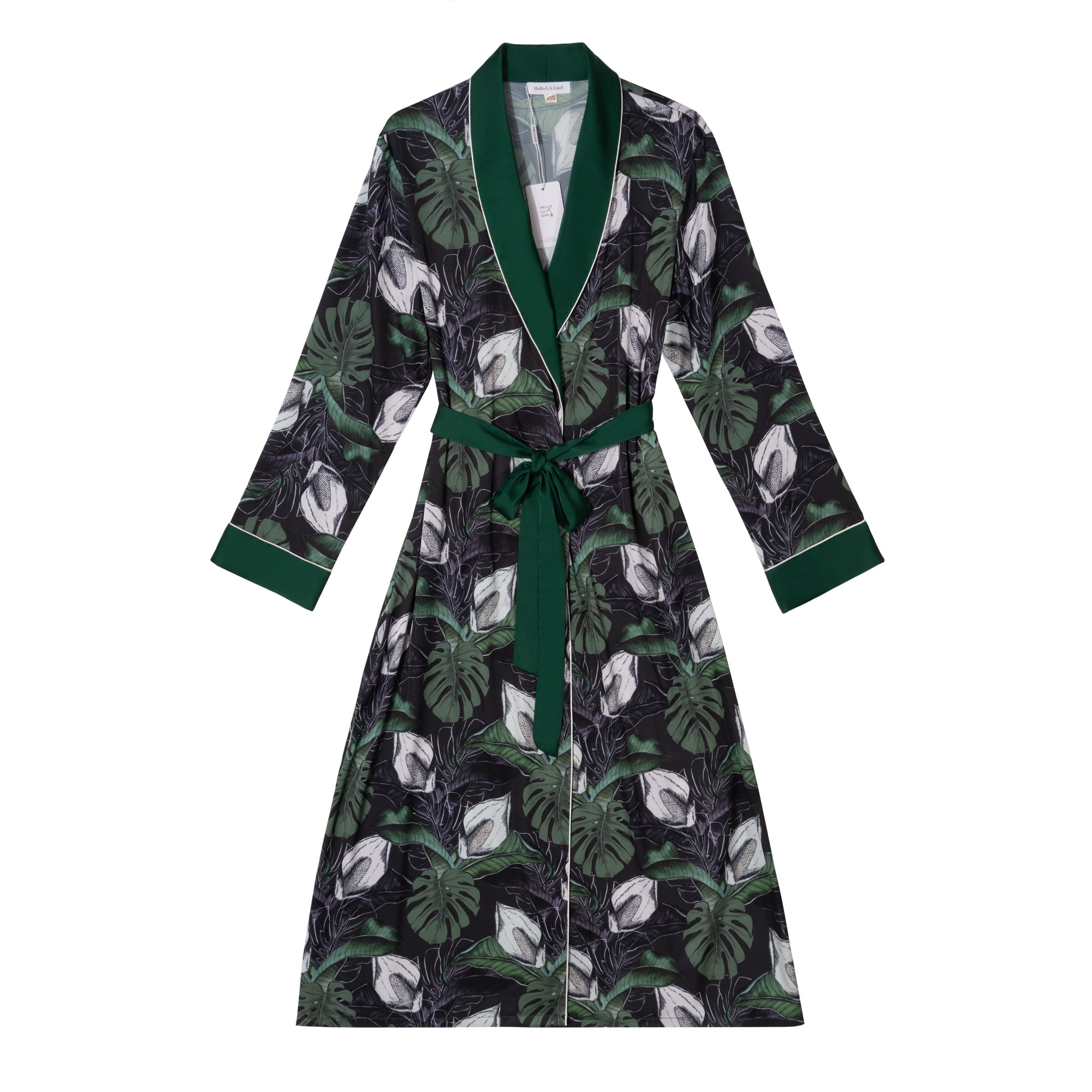 Tropical Print Green Silky Satin Robe With Belt is made of 100% Polyester