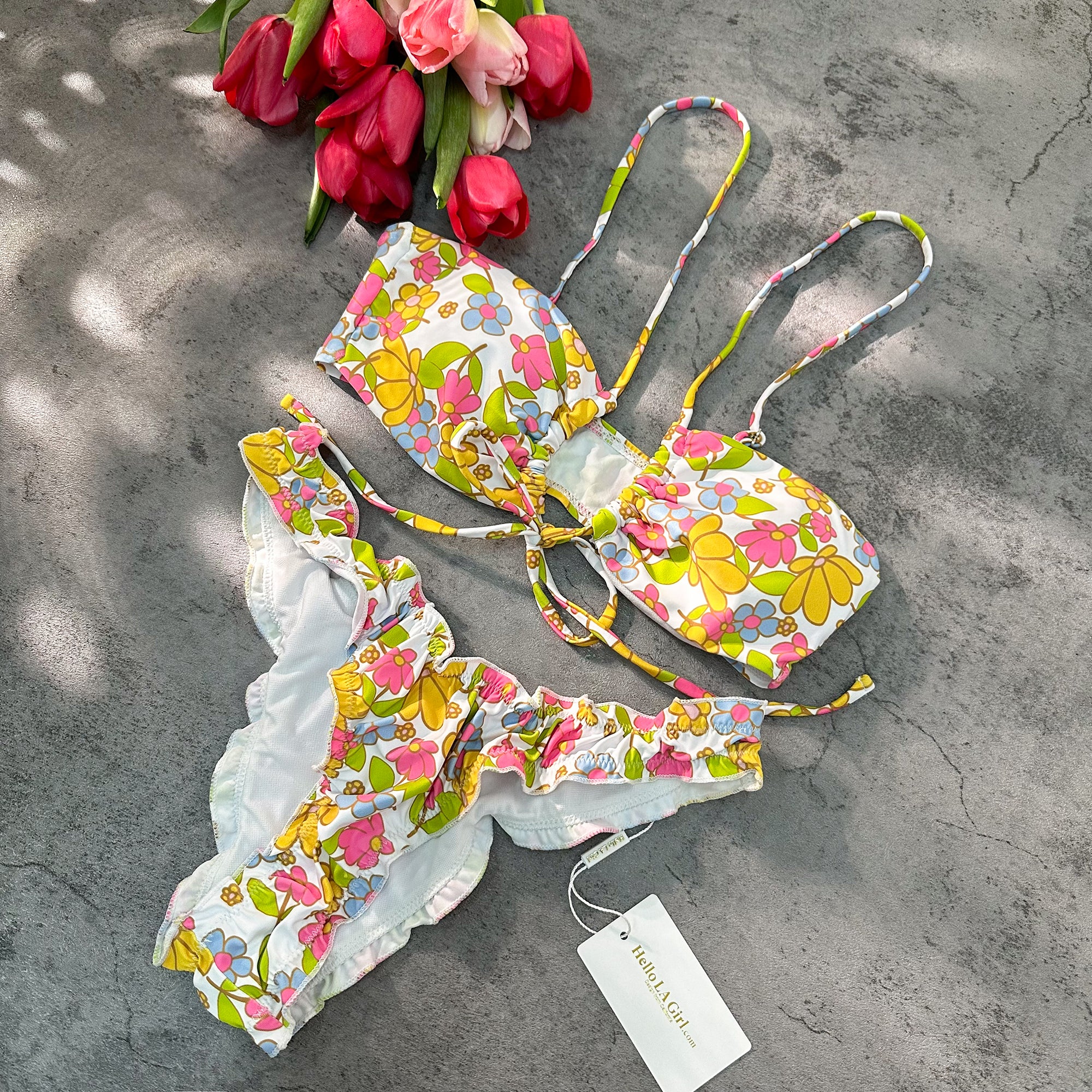 This bikini set is made of 82% Polyester, 18% Spandex.Fabric is very stretch, soft and comfortable.