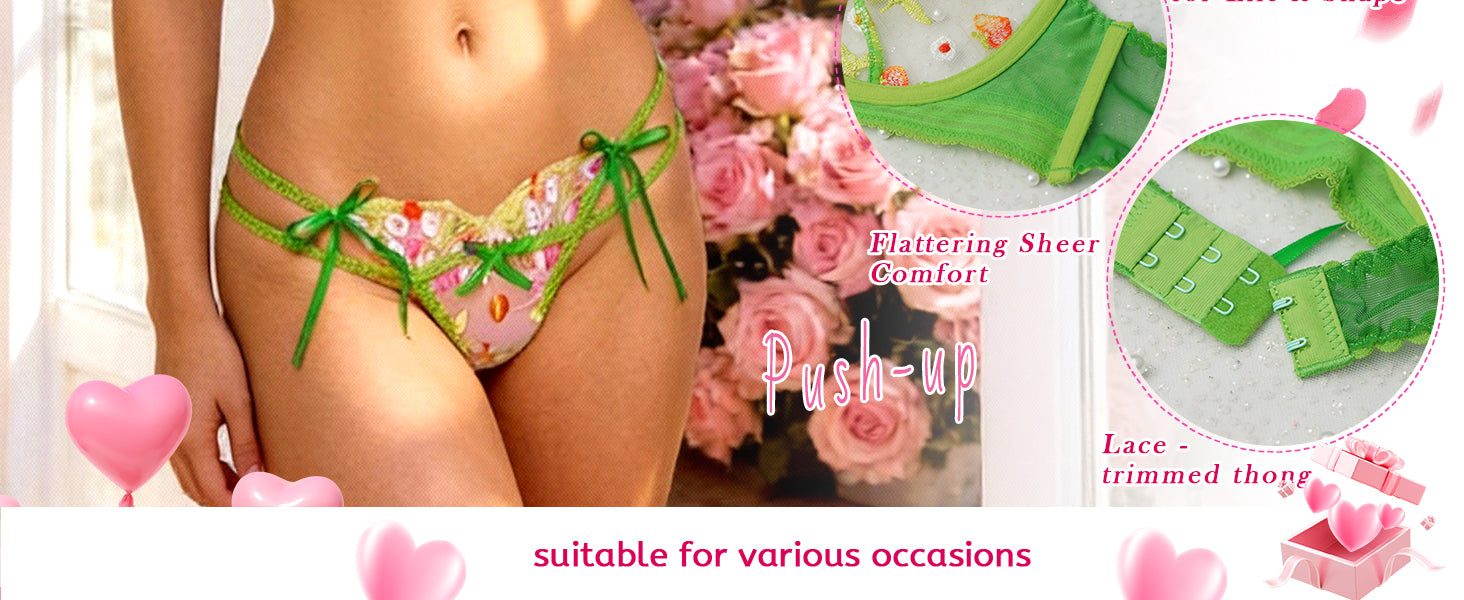 • Comfortable and Form-Fitting: Lightweight Padded-free Underwire Bra. Crafted from soft and smooth fabric, this lingerie set offers a comfortable and flattering fit.