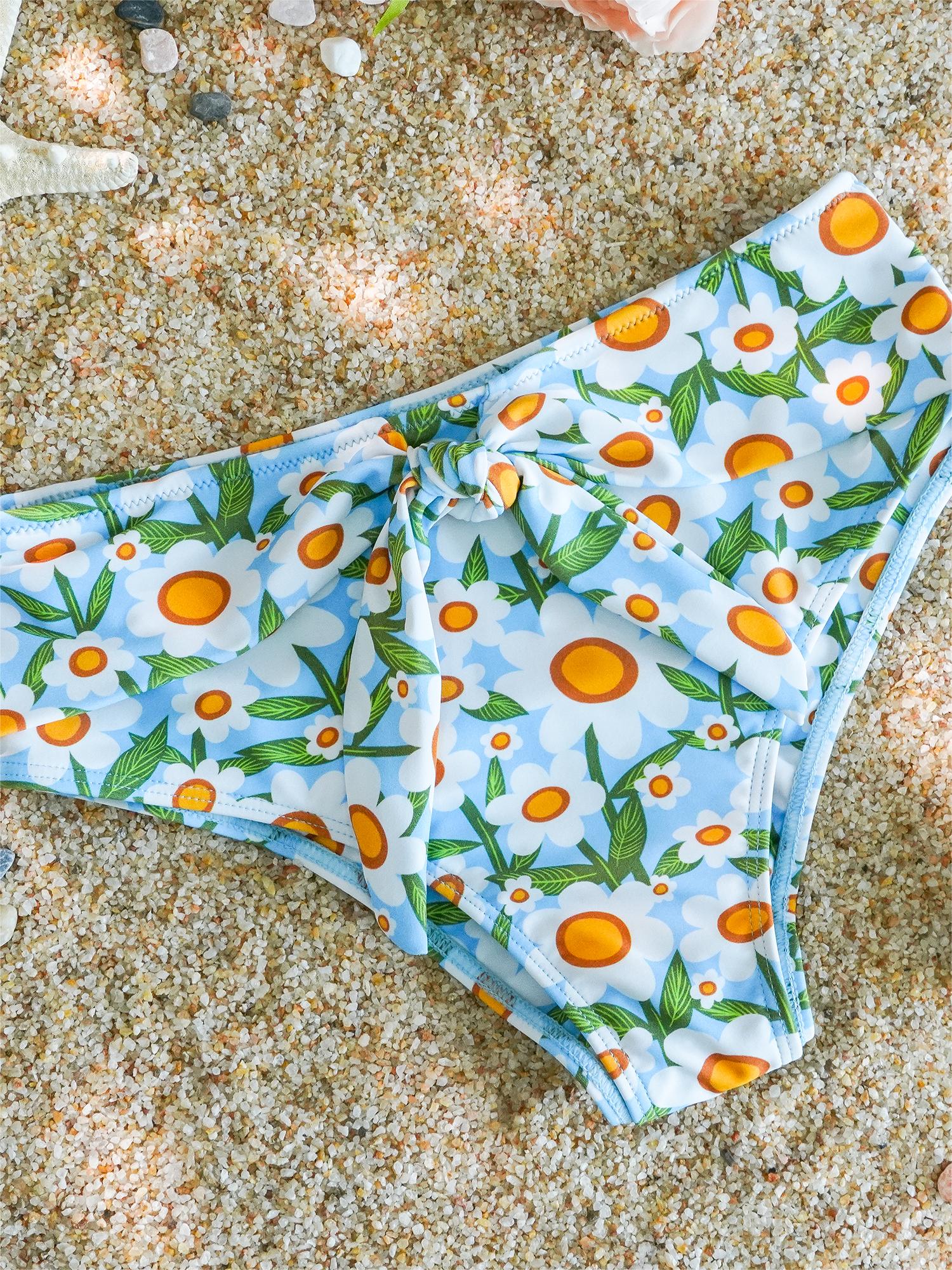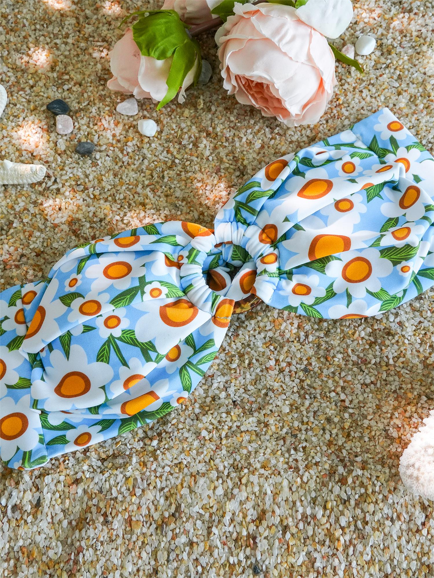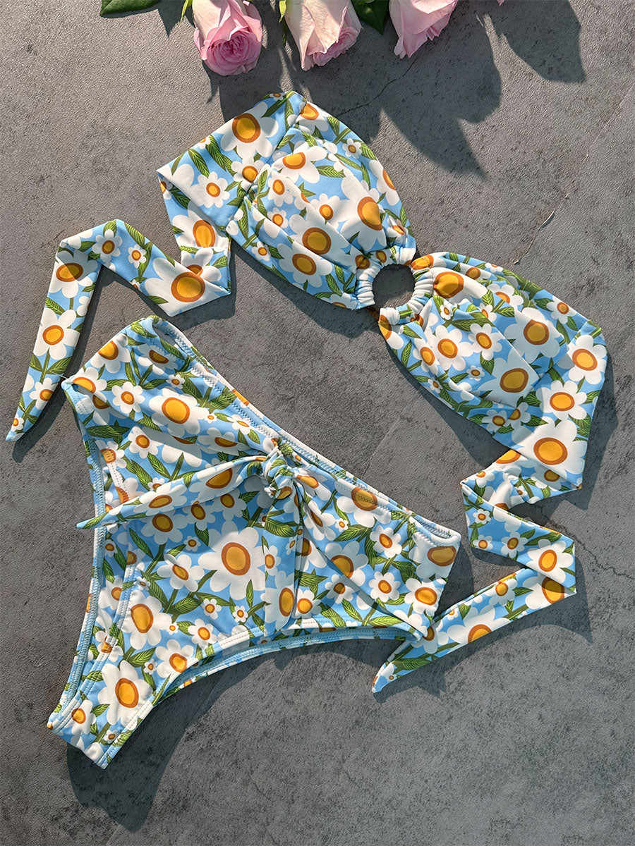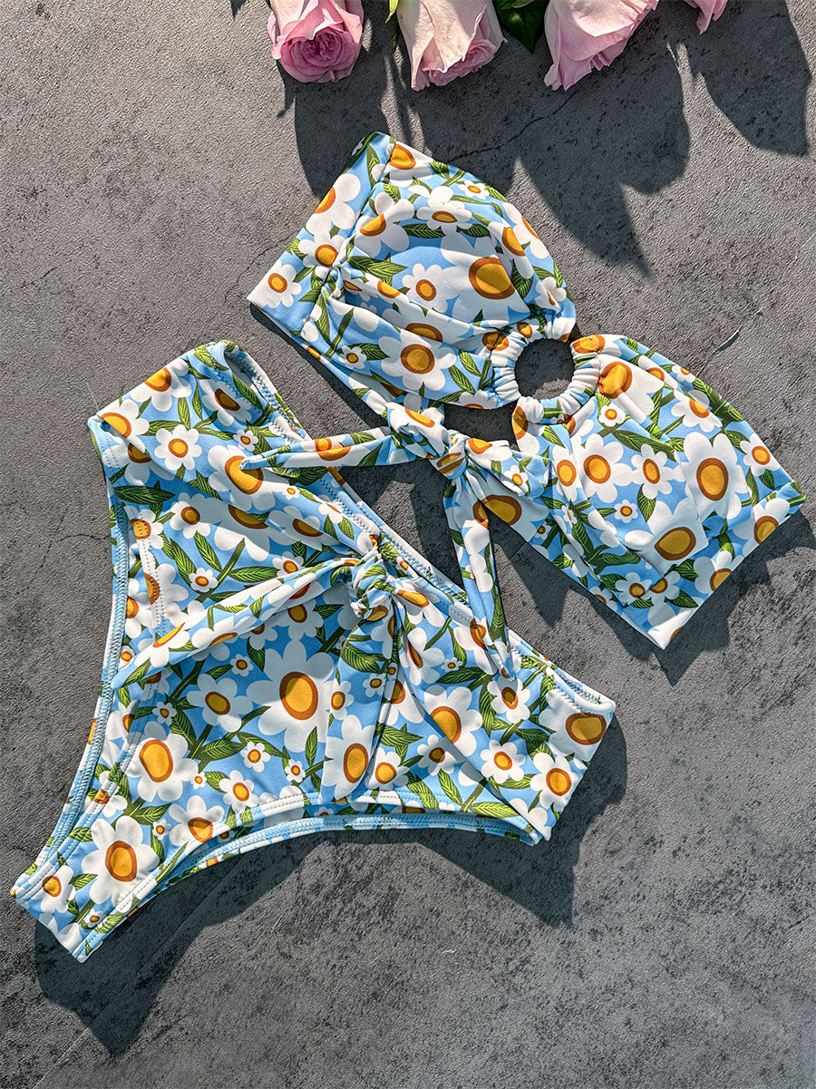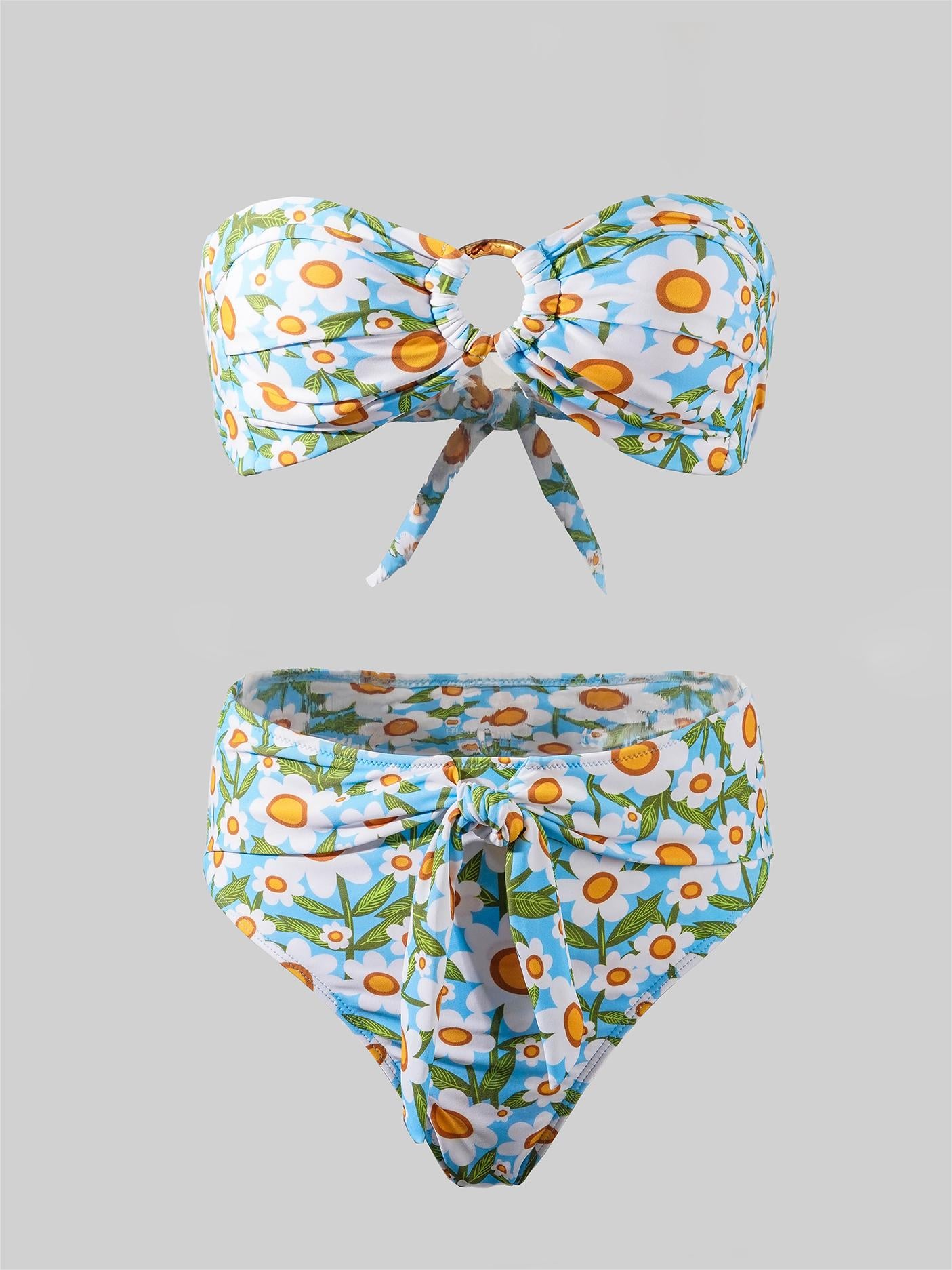 Ensemble de bikini taille haute à double épaisseur à imprimé floral bleu