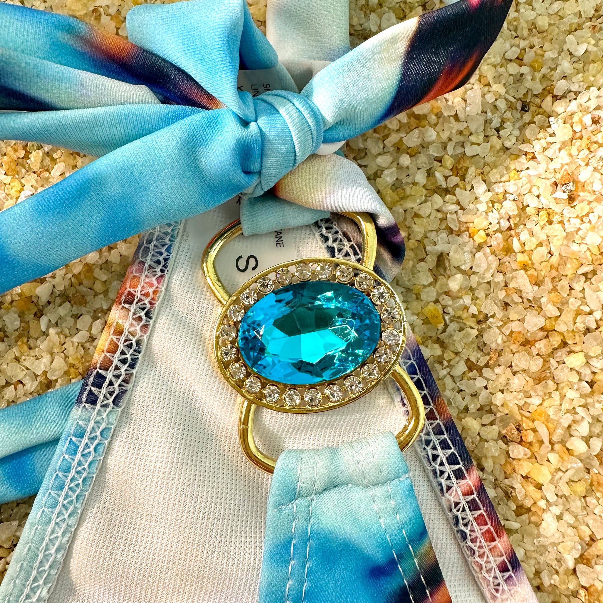 Ensemble de bikini taille basse sexy à bretelles nouées et à cristaux