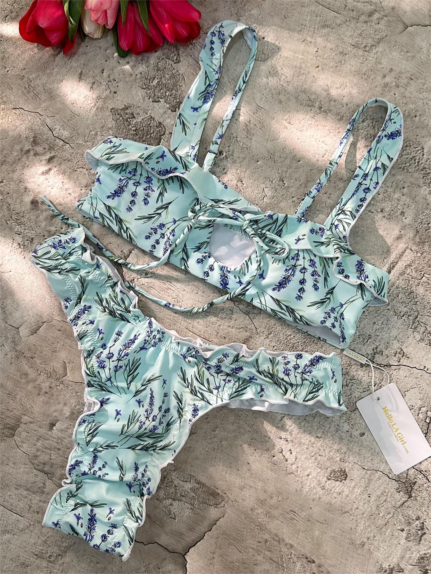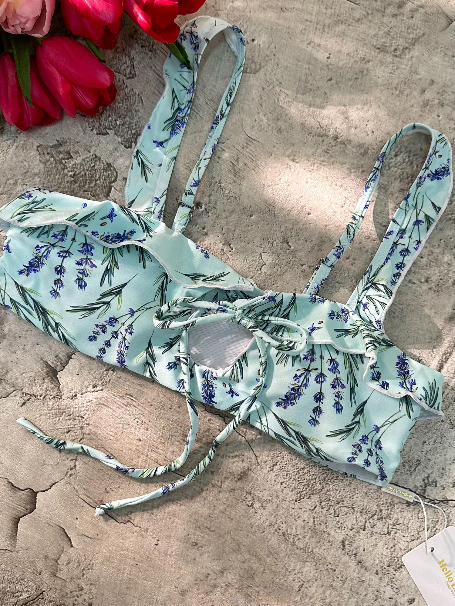 Ensemble de bikini push-up creux en dentelle à impression numérique Wheat