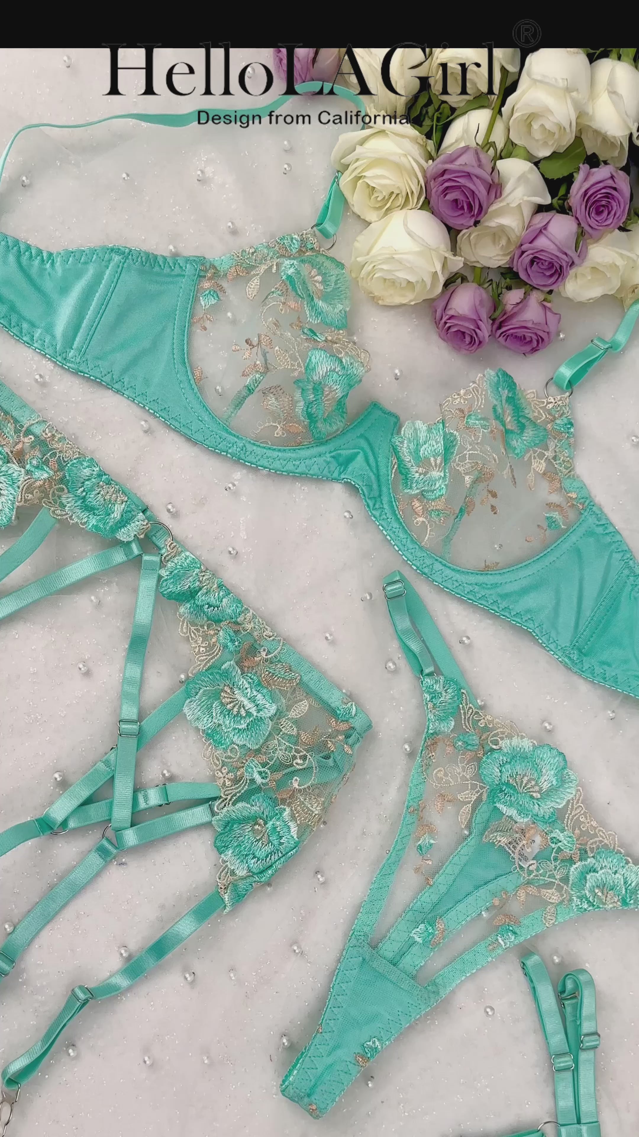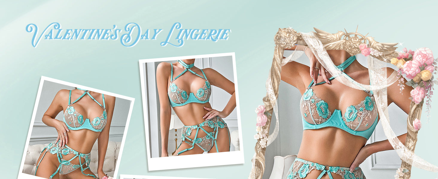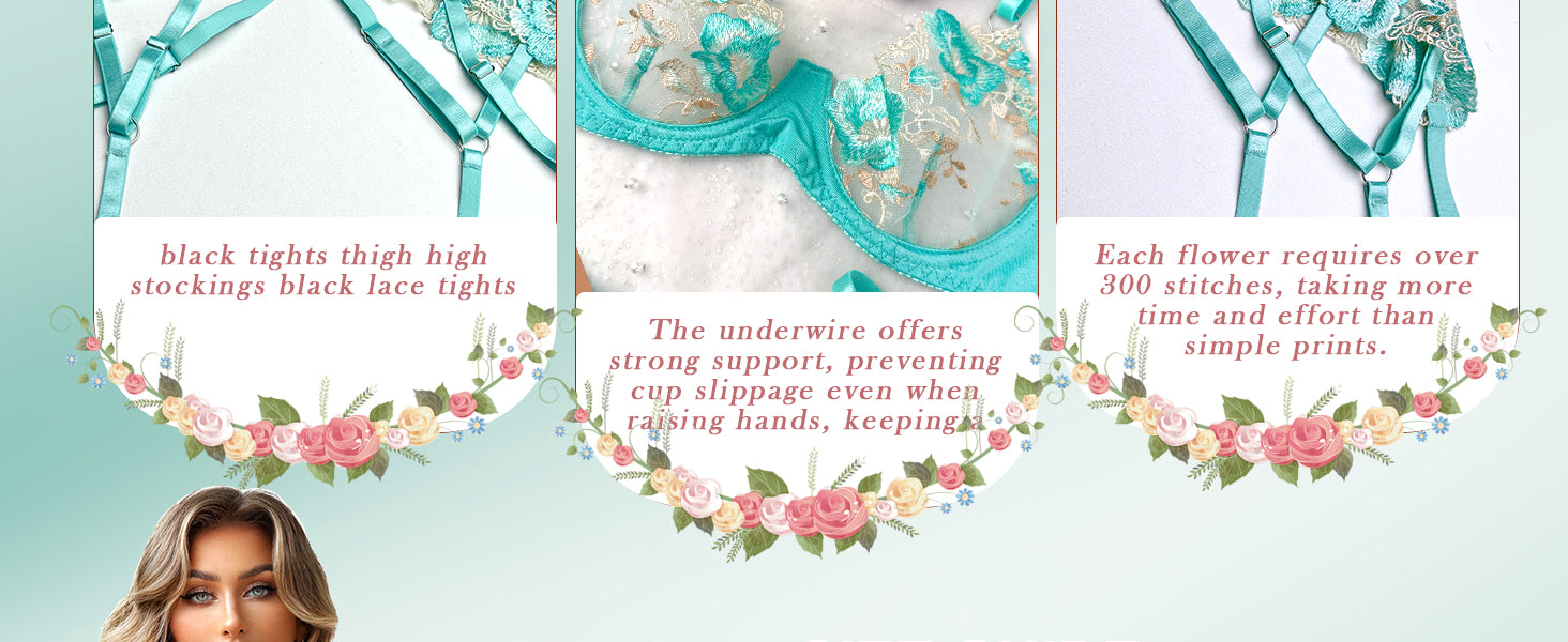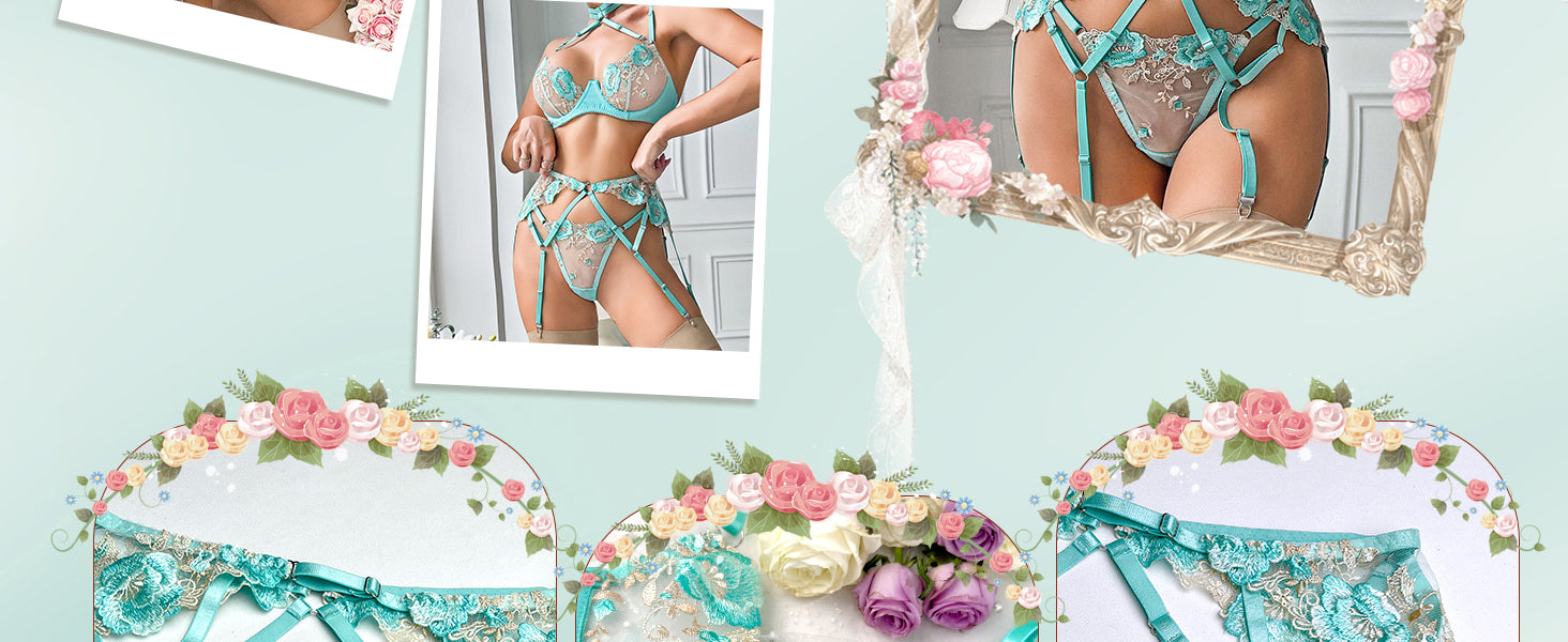 Turquoise Floral Allure Lingerie Set