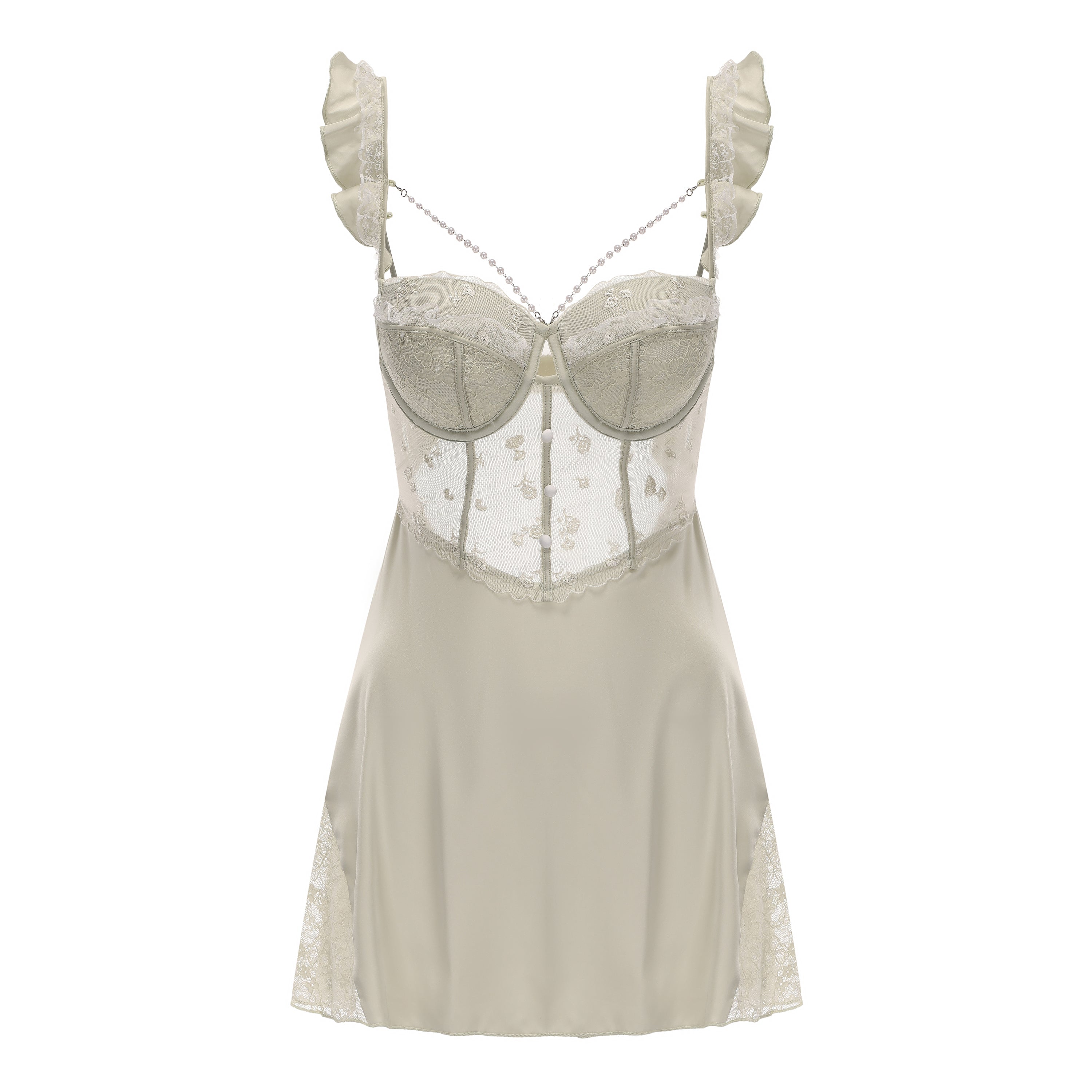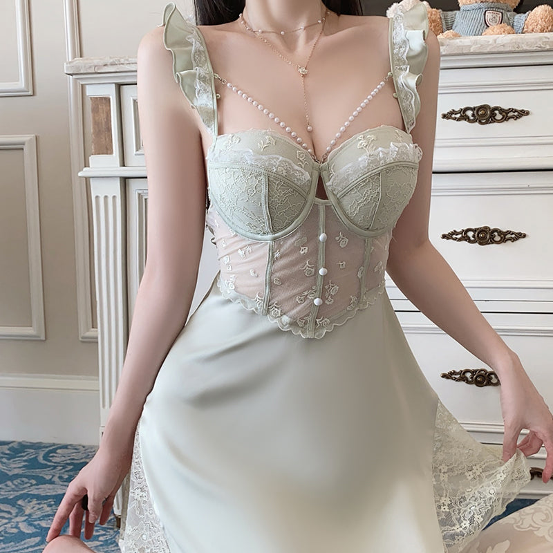 Mint Green Satin & Lace Pearl-Accent Nightgown