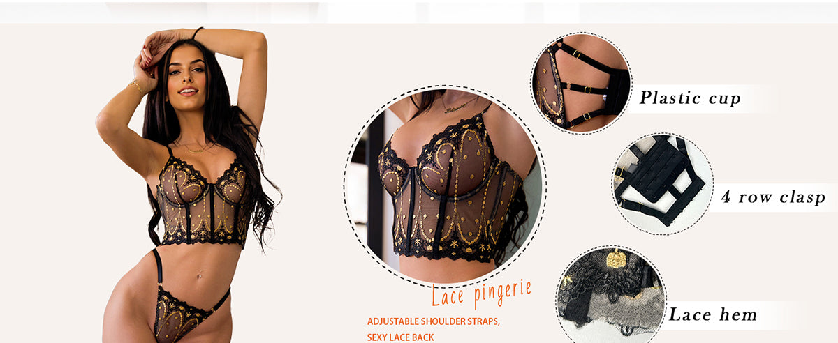 - Conception de broderie exquise : l'ensemble de lingerie présente une broderie complexe, ajoutant des motifs délicats pour un attrait séduisant.