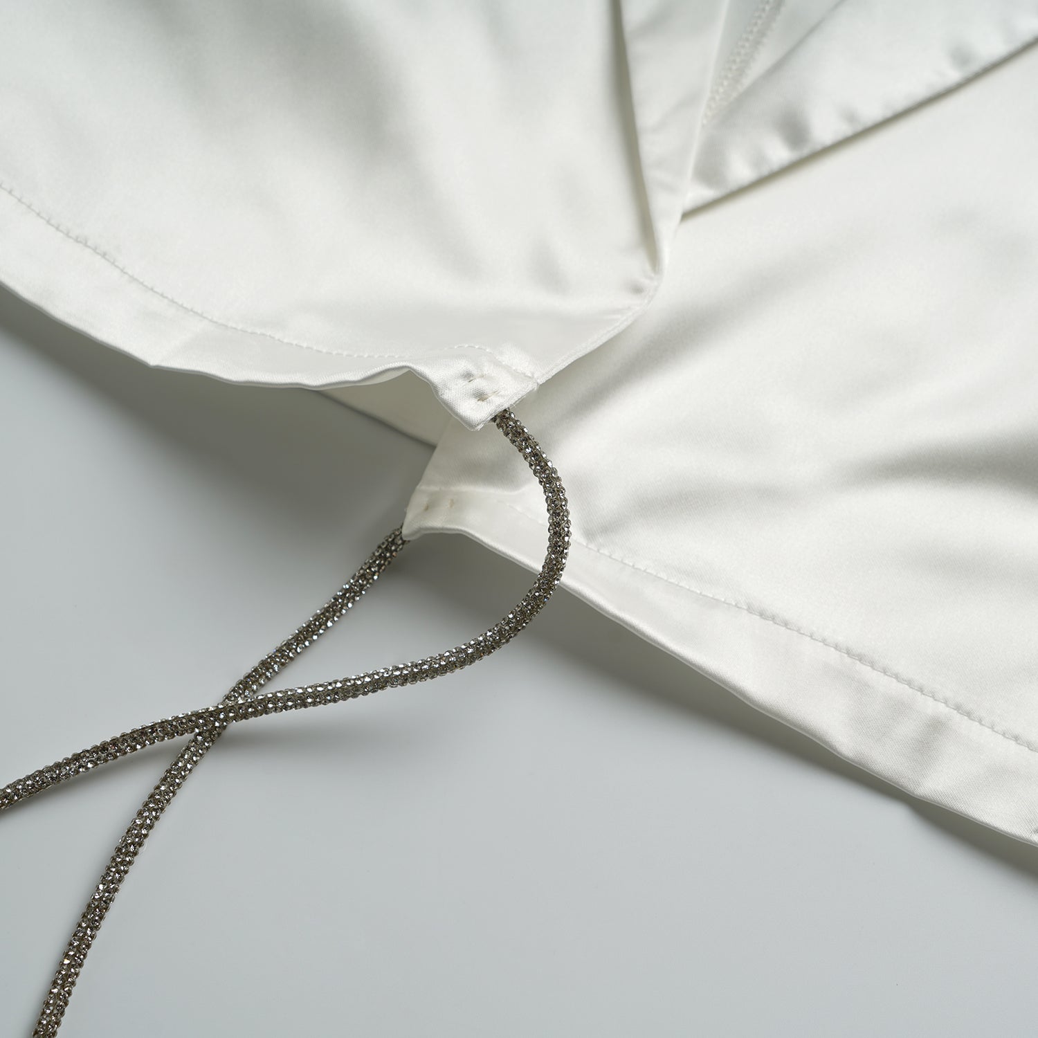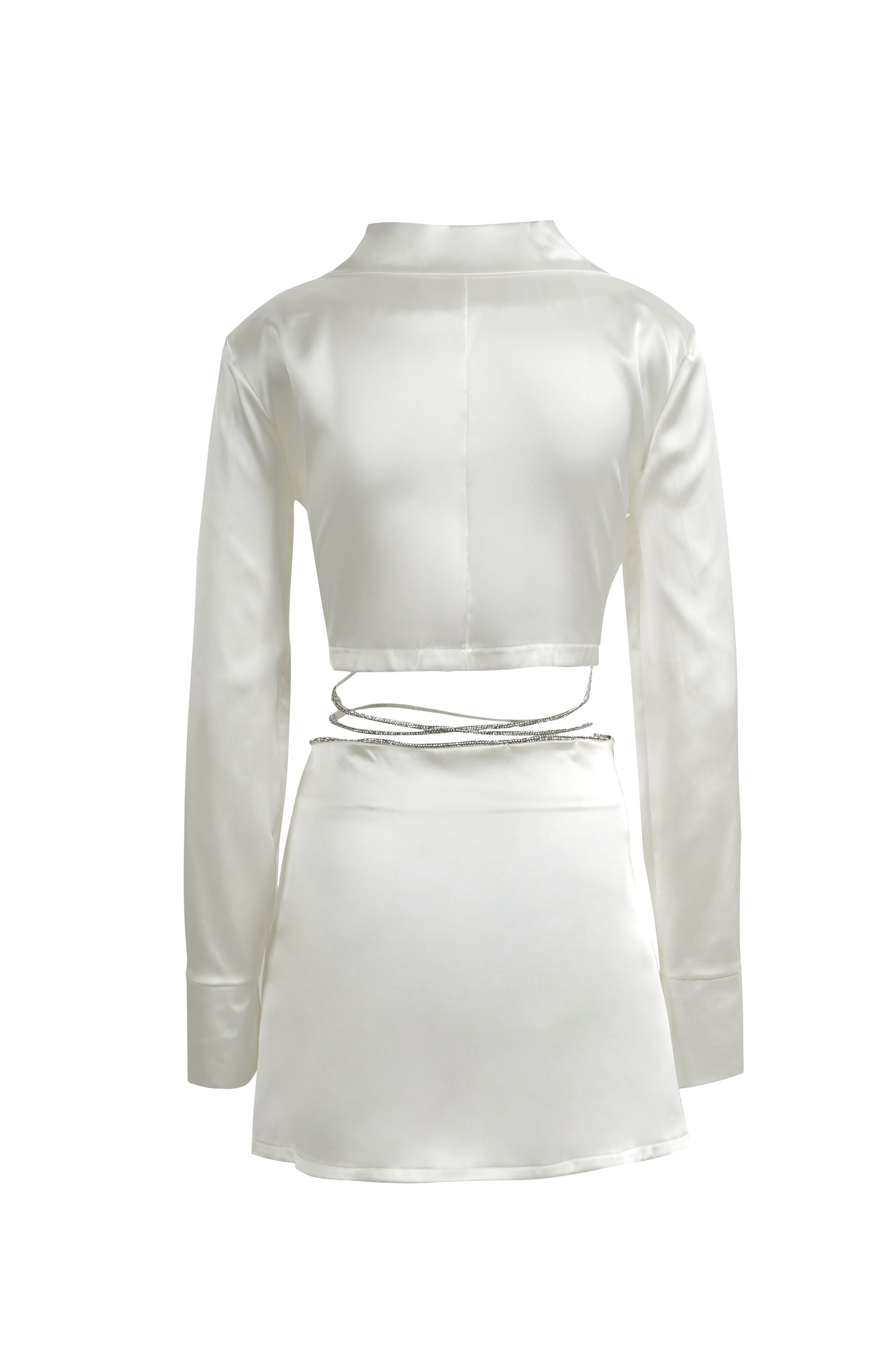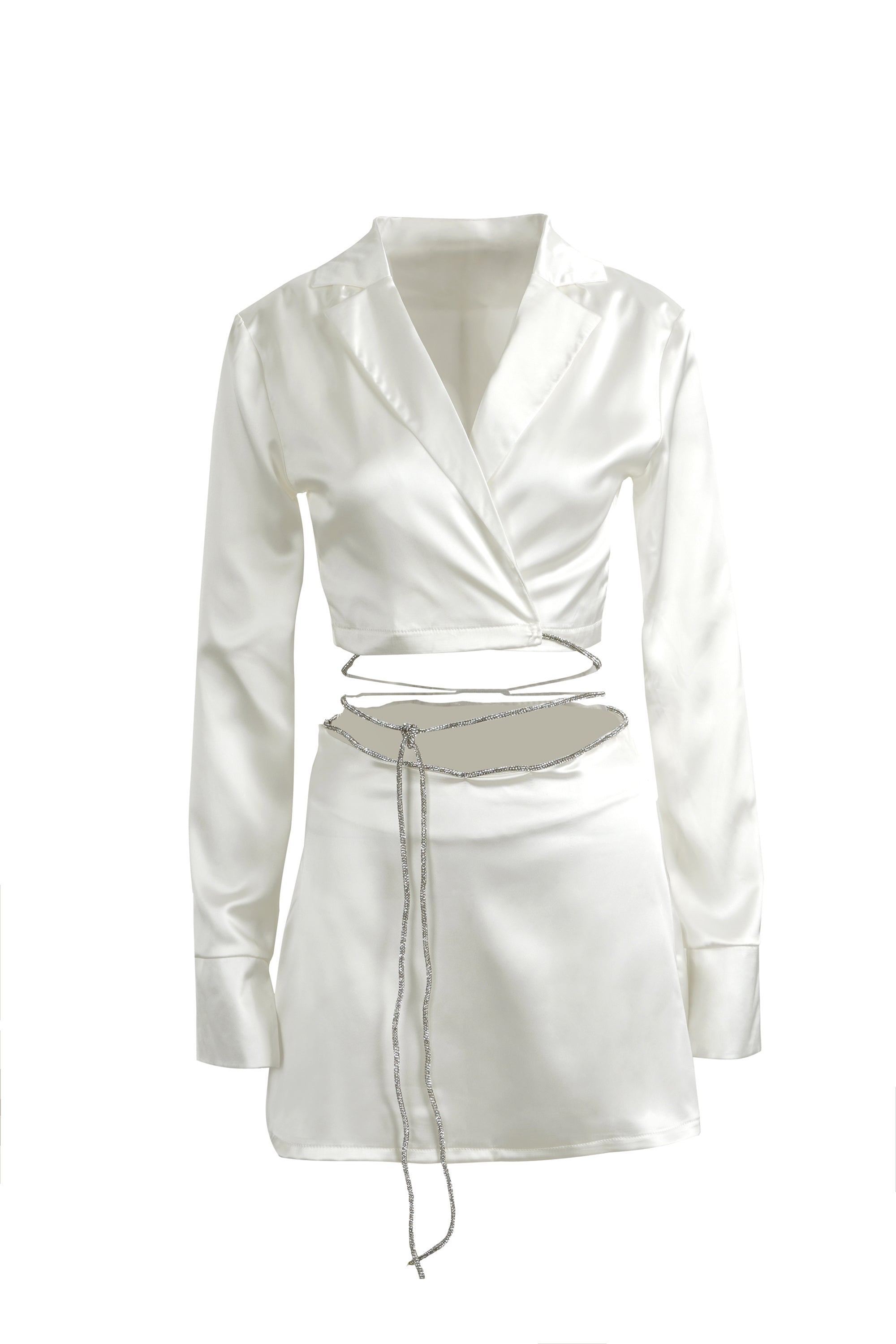 White Satin Silver Diamond Crop Top